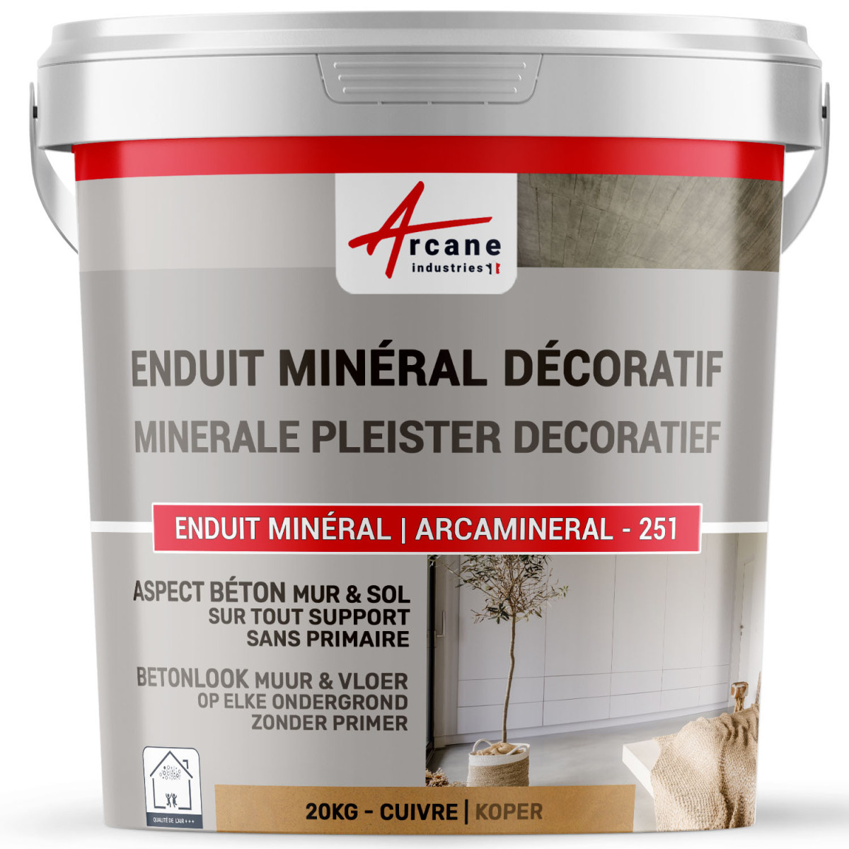 L'ENDUIT MINÉRAL DÉCORATIF est un enduit mural et sol haut de gamme de rénovation à effet béton. Il est applicable en recouvrement sur tous supports sans primaire pour cuisines, salons, chambres, escaliers, salle de bain.