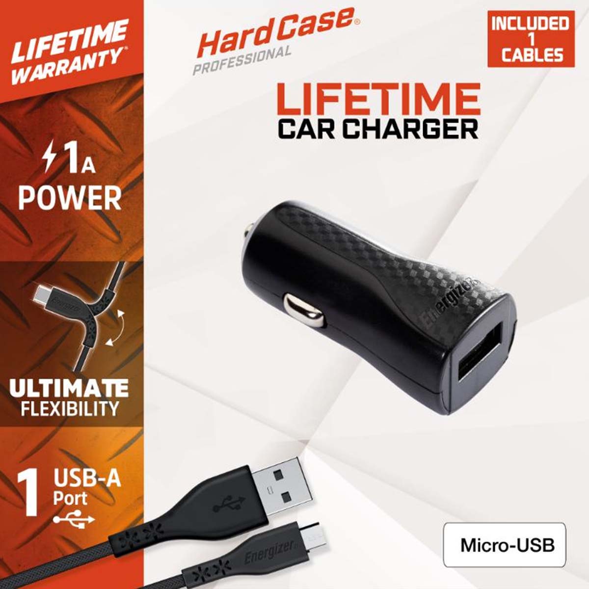 ENERGIZER Chargeur Allume-Cigare USB-A 5W 1A HardCase avec Câble Micro--USB Noir