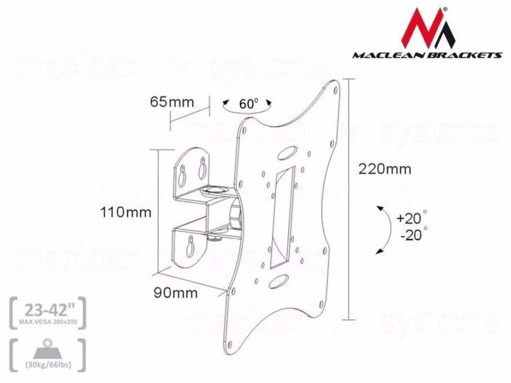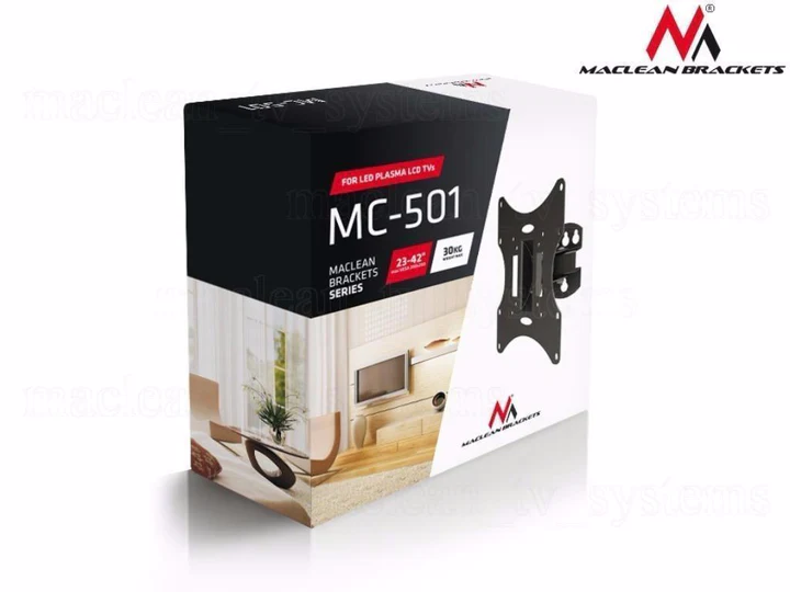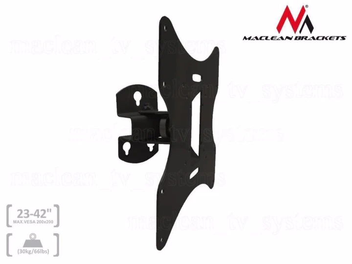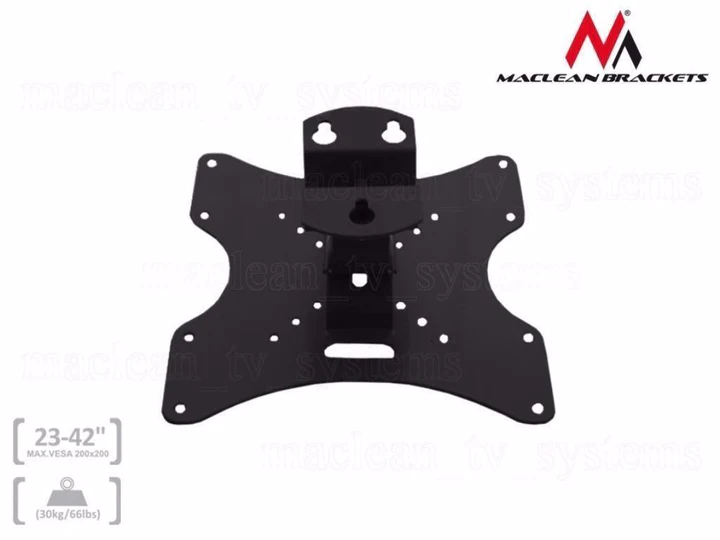 Support mural universel de haute qualité pour écrans LED / PLASMA / LCD. Permet le montage et le démontage sans effort d'une large gamme d'écrans plats. S'adapte à tous les écrans LCD/LED ou Plasma disponibles dans le commerce qui sont compatibles VESA avec le support, et ne dépassent pas le poids autorisé des supports. Spécialisée dans la production de supports, supports et supports, Maclean Brackets compte des milliers de clients satisfaits sur plusieurs places de marché européennes. Les produits Maclean Brackets sont fabriqués à partir des meilleurs matériaux, conformément aux normes les plus strictes de l'industrie. Chaque support est fourni avec des accessoires d'installation et est livré avec une garantie de 24 mois. Comment vérifier si votre téléviseur est compatible avec ce support ? 1. Assurez-vous que votre téléviseur ne dépasse pas le poids maximum que notre support peut supporter 2. Comparez les trous VESA de votre téléviseur avec le VESA - Si les trous VESA à l'arrière de votre téléviseur ont l'une des normes d'espacement suivantes (en mm), il peut être monté sur le support : 75x75, 100x100, 200x100, 200x200 pour écrans LED / PLASMA / LCD Matériau : Acier laminé à froid de qualité. Plus durable et stable que l'acier ordinaire. Conçu pour les tailles d'écran : 23 pouces à 42 pouces (ou plus si l'écran est compatible VESA avec le support) Conçu pour les téléviseurs à écran plat jusqu'à : 30 kg (les tests prouvent que le support supporte une charge jusqu'à 90 kg) Support normes VESA : 75 x 75mm, 100x100mm, 200x100mm, 200x200mm Distance du mur : 9 cm Réglage de l'angle horizontal : -30~ / +30° Réglage de l'inclinaison verticale : -20°~ / +20° Construction métallique stable Support mural universel de haute qualité pour écrans LED / PLASMA / LCD Montage et démontage sans effort Convient à tous les écrans LCD / LED ou Plasma disponibles dans le commerce conformes aux normes VESA Chaque support est fourni avec des accessoires d'installation
