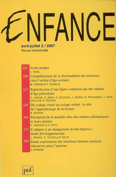 | Libellé | Enfance - Numéro 2 (2007) (Revue) |