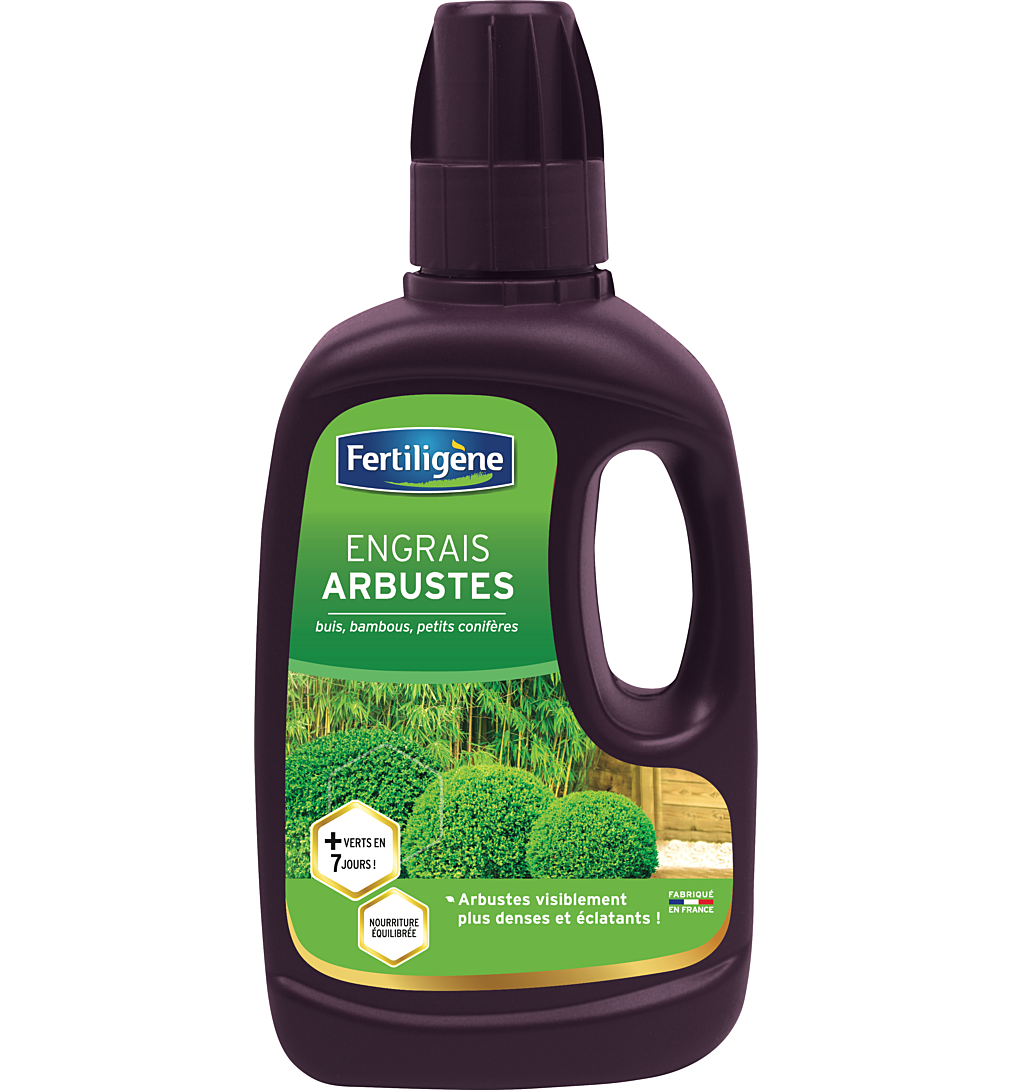 L'engrais liquide arbustes en pots Fertiligène est formulé à base de minéraux(magnésium, fer, manganèse,...) bénéfiques pour les plantes. Il est adapté à tous types d'arbustes (buis, bambous, petits conifères...) et est rapidement assimilable par les racines. Il apporte une nourriture équilibrée pour des arbustes visiblement plus verts, plus brillants et plus beaux en 7 jours (comparé à une plante non nourrie). Fabriqué en France.