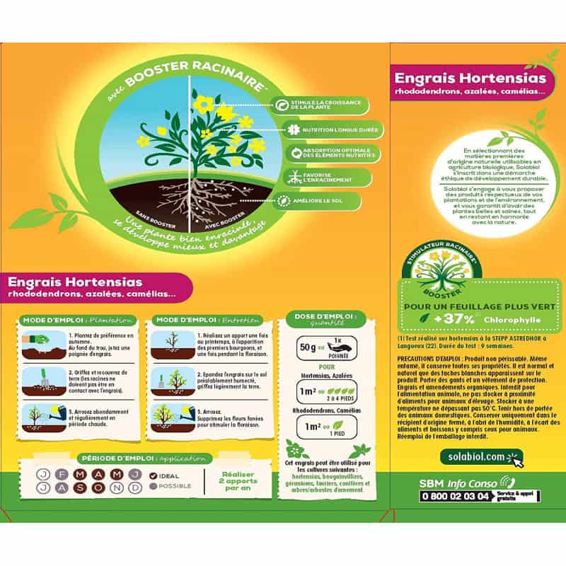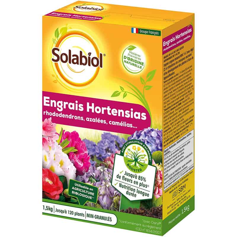 | Libellé | Engrais bio pour Hortensias, Rhododendrons, Azalées et Camélias - Solabiol SORHOY15 1,5 Kg |