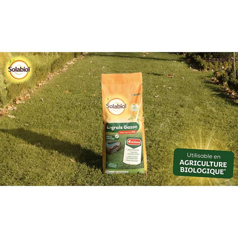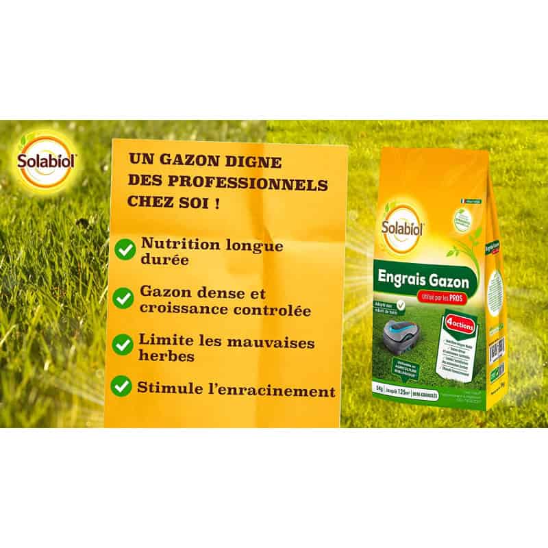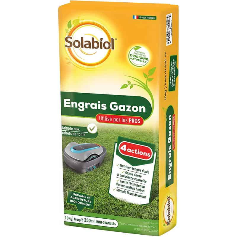 L'engrais Solabiol utilisé par les pros nourri durablement le gazon. Ce dernier devient dense et dispose d'une croissance contrôlée.