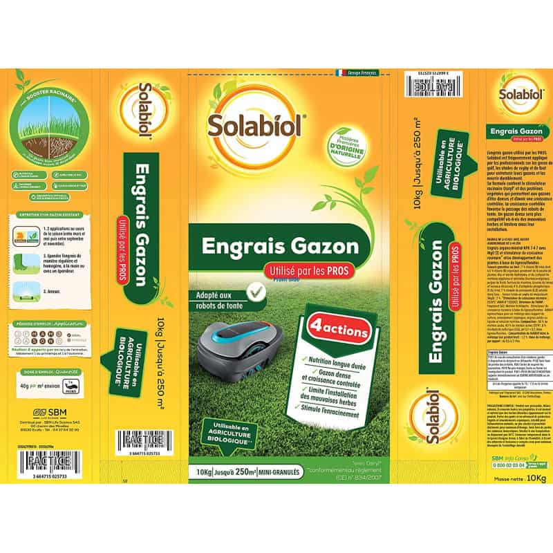Libellé Engrais gazon bio professionnel Solabiol 10KG