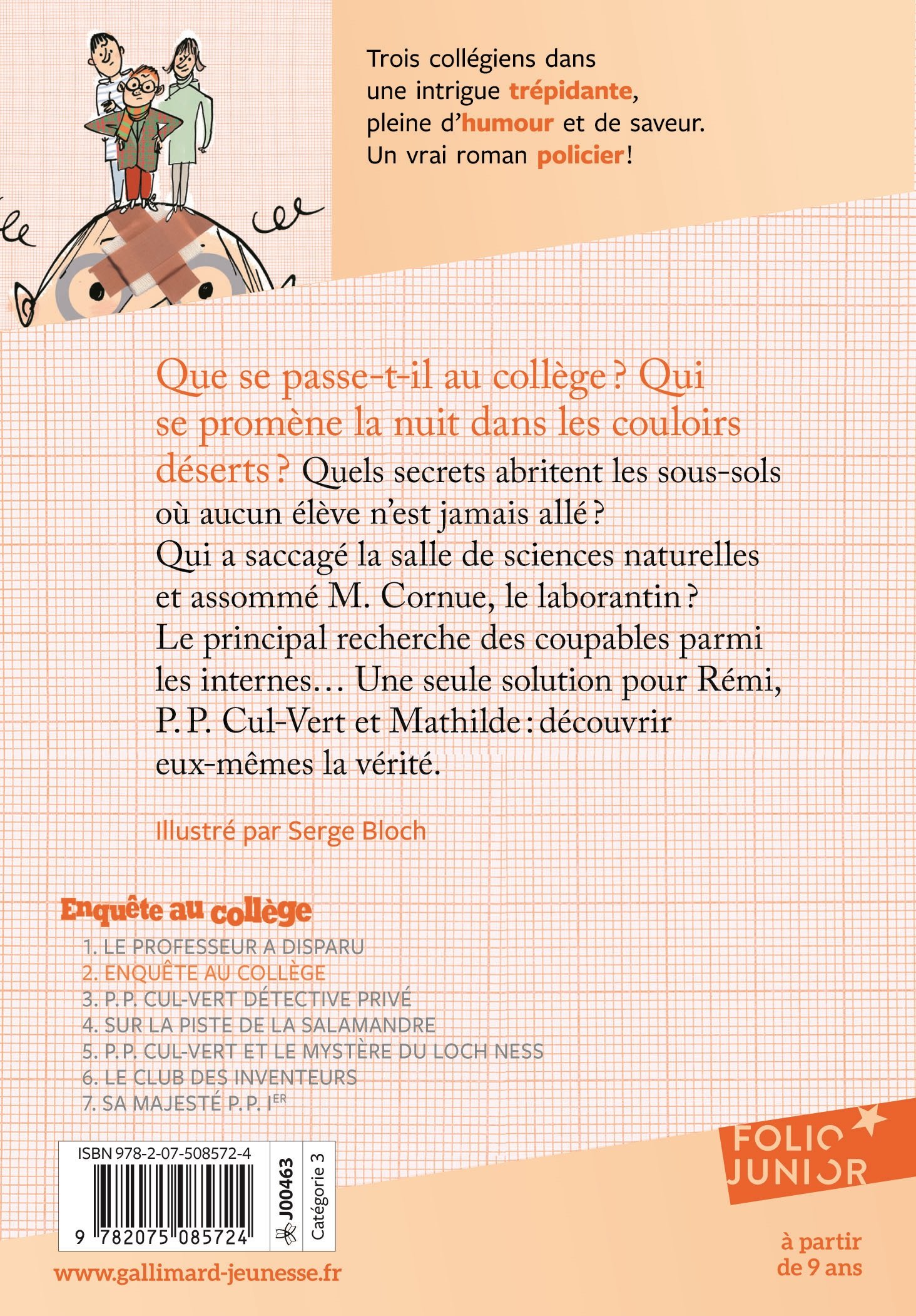 Que se passe-t-il donc au collège ? Qui se promène la nuit dans les couloirs déserts ? Quel secret abritent les sous-sols où aucun élève n'est jamais allé ? Qui a saccagé la salle de sciences naturelles et assommé M. Cornue, le laborantin ? Le principal cherche des coupables parmi les internes... Une seule solution pour Rémi, P.P. Cul-Vert et Mathilde : découvrir eux-mêmes la vérité.