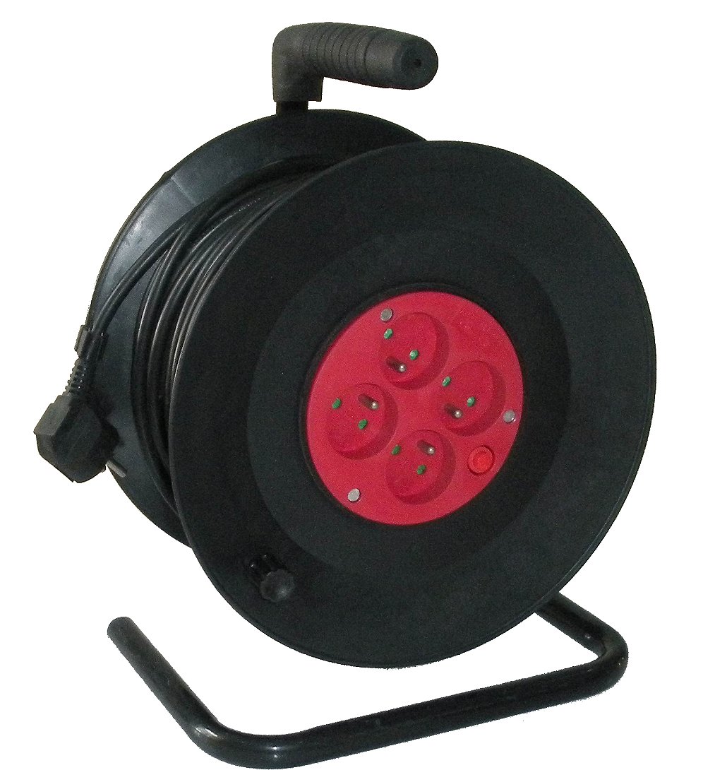 Enrouleur 4 prises 25m - Eco+ - 3G 1,5 mm2 - Longueur : 25 mètres - 4 prises 16A+T - Max déroulé 3000W 230V-50Hz - Max enroulé 1200W 230V-50Hz