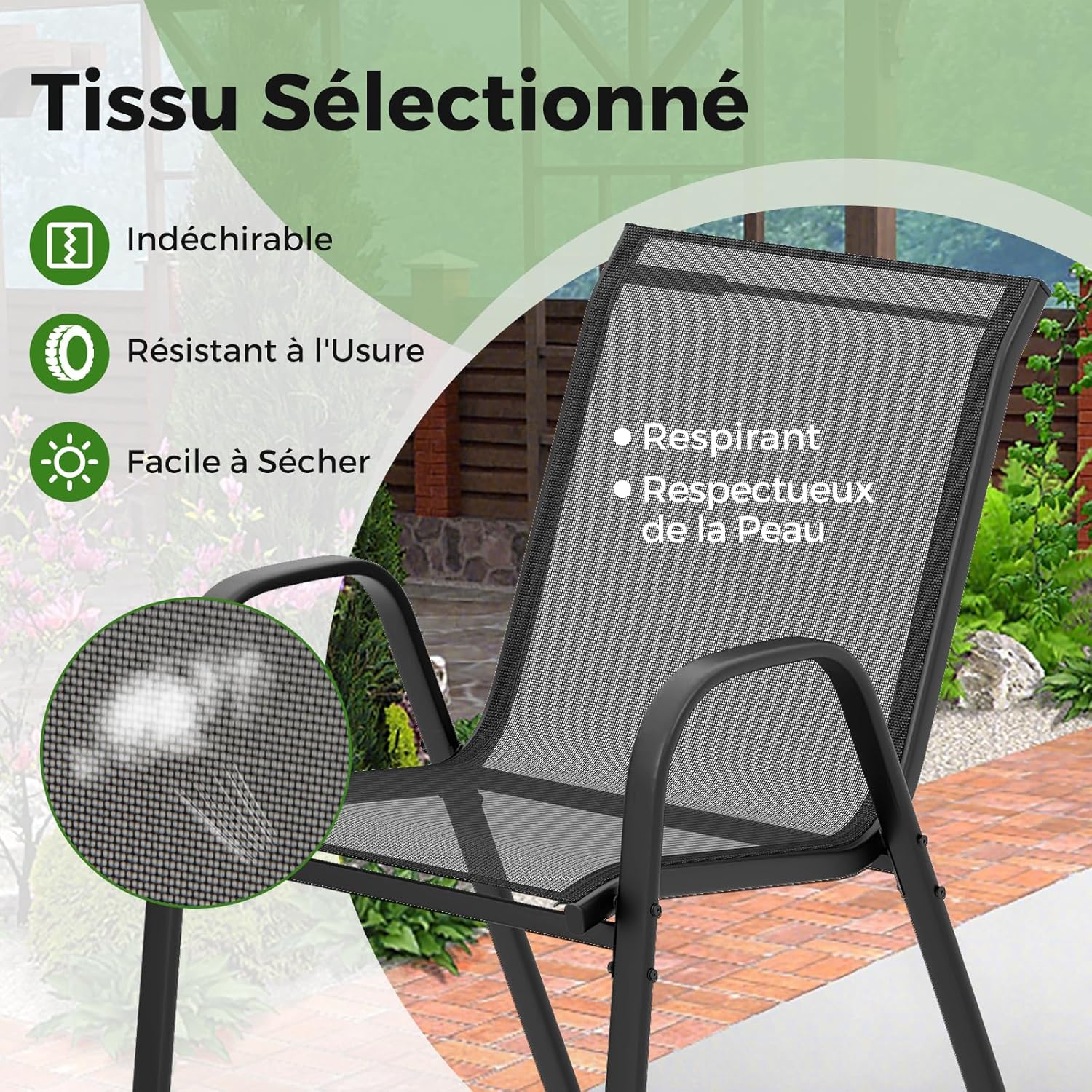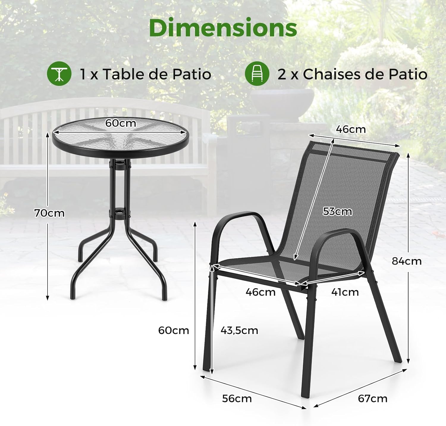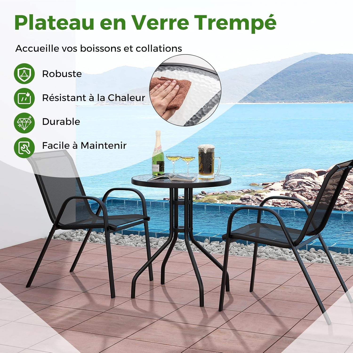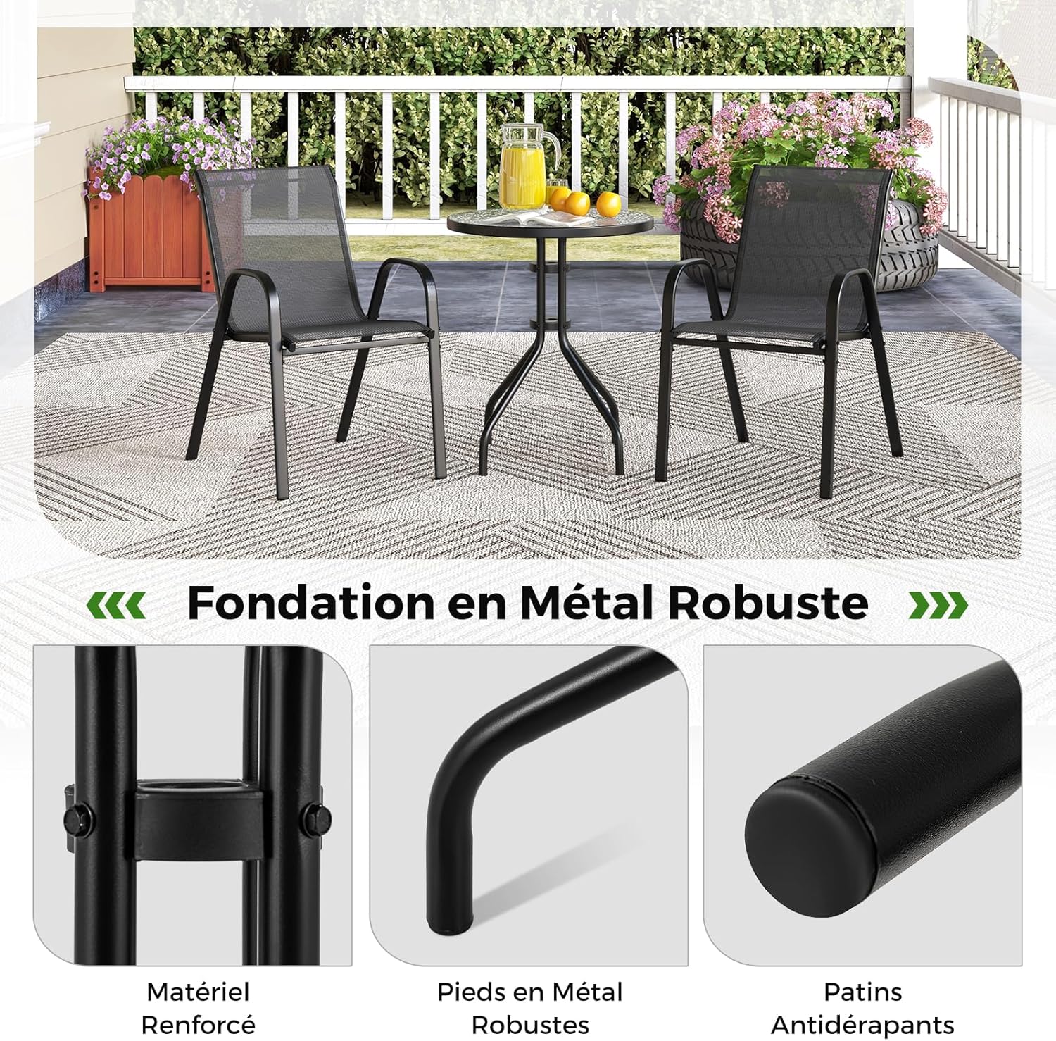 - Solution de Rangement Facile : Complété par 2 chaises empilables, cet ensemble bistrot est facile à déplacer et se plie rapidement. De plus, vous pouvez empiler cet ensemble de chaises pour économiser de l'espace au sol, en faisant une solution idéale pour profiter d'une expérience de style café dans des espaces extérieurs.