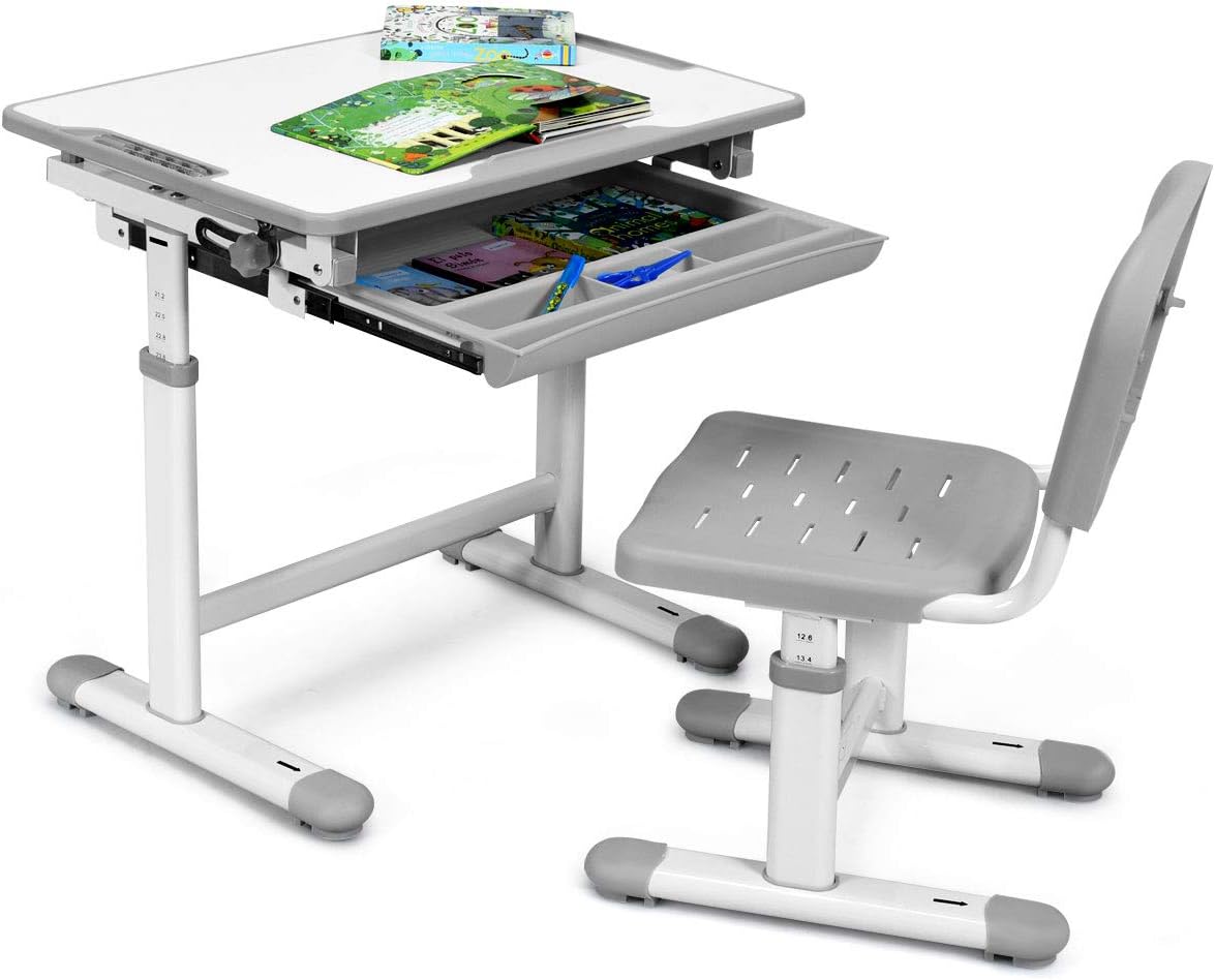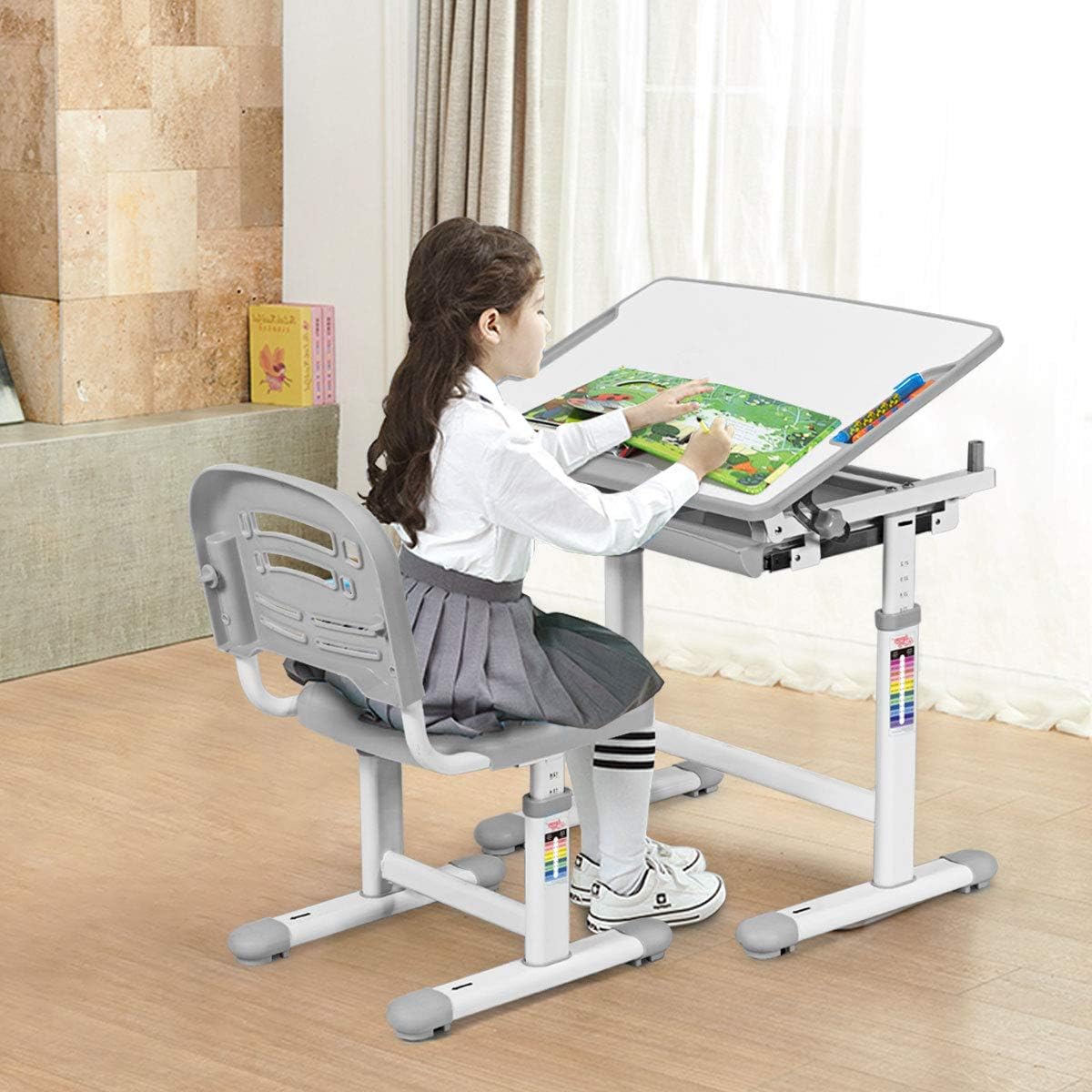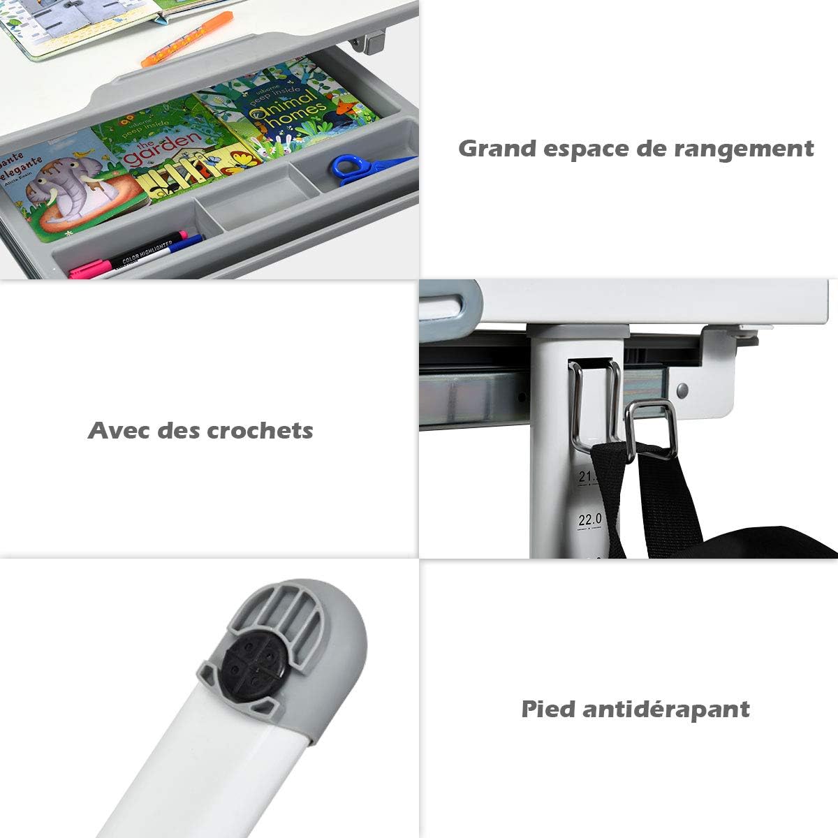 | Libellé | Ensemble bureau et chaise pour enfant avec hauteur réglable et table inclinable, avec tiroir et crochet sur côté pour les sacs à dos,gris |