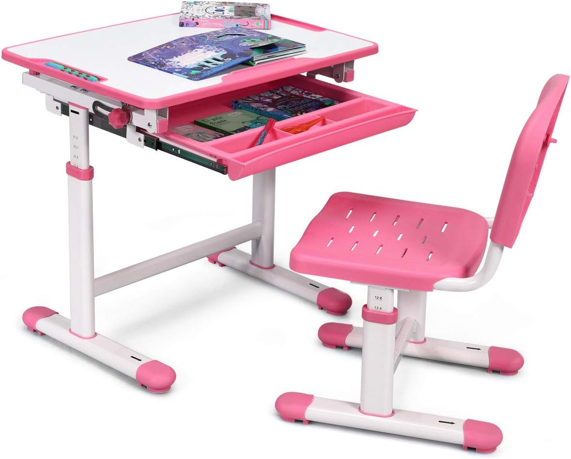 | Libellé | Ensemble bureau et chaise pour enfant avec hauteur réglable et table inclinable, avec tiroir et crochet sur côté pour les sacs à dos,rose |