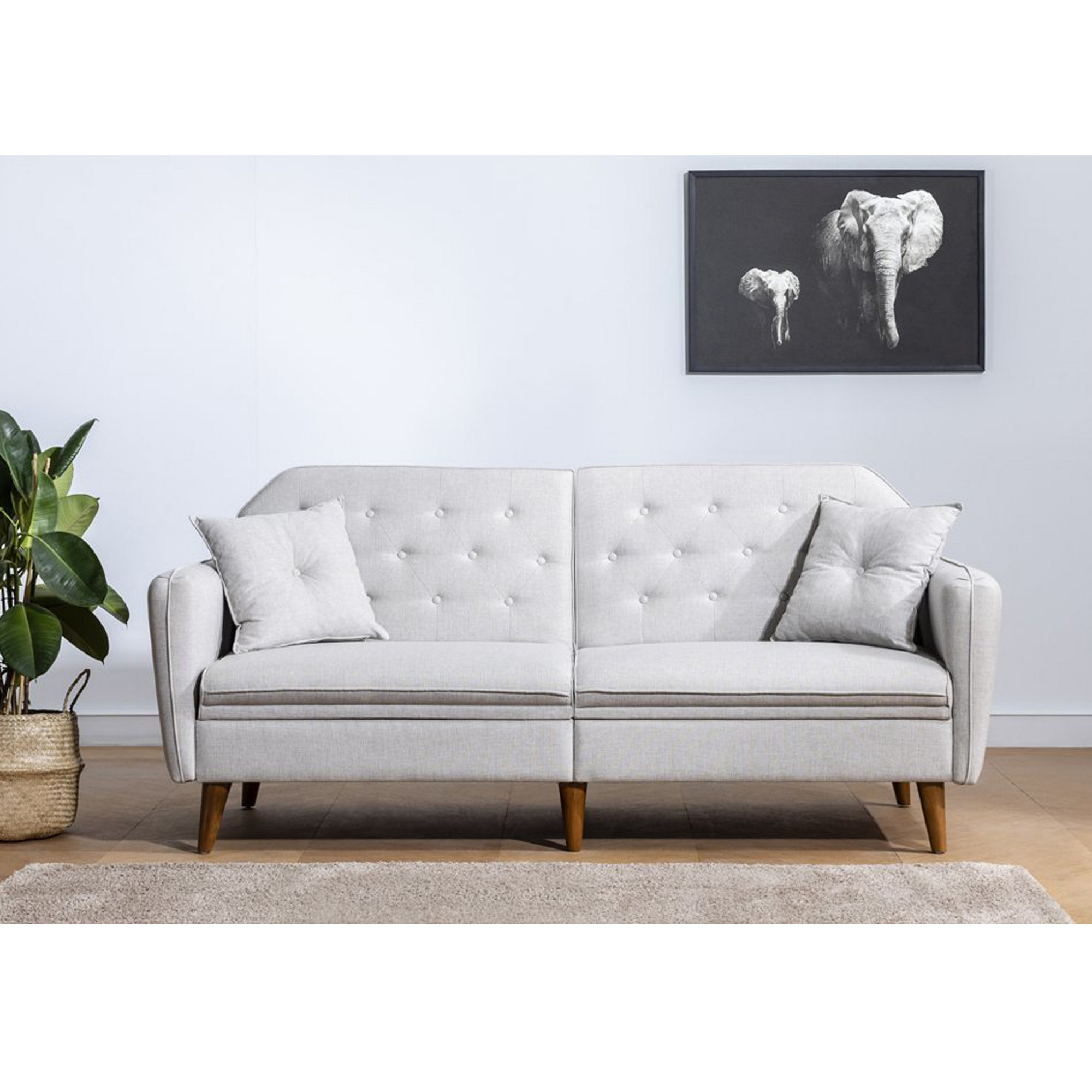 L'ensemble canapé convertible 3 places avec un fauteuil de la collection Touka de couleur crème et naturel est fabriqué avec les caractéristiques suivantes : Cadre : Fabriqué en bois, ce qui le rend robuste et durable. Tissu : Le revêtement est en 100% lin crème, ce qui lui donne une apparence élégante et naturelle. Densité d'assise : Les coussins d'assise ont une densité de 28 kg/m³, ce qui signifie qu'ils offrent un bon soutien et un confort adéquat pour s'asseoir. Pieds en bois : Le canapé et le fauteuil reposent sur des pieds en bois de hêtre naturel, ce qui ajoute à leur esthétique. Dimensions du canapé : Largeur : 205 cm Profondeur : 85 cm Hauteur : 80 cm Profondeur d'assise du canapé : 55 cm Hauteur d'assise du canapé : 42 cm Dimensions du fauteuil : Largeur : 98 cm Profondeur : 76 cm Hauteur : 75 cm Profondeur d'assise du fauteuil : 59 cm Hauteur d'assise du fauteuil : 46 cm Cet ensemble semble être une option confortable et élégante pour votre salon. Le fait que le canapé soit convertible signifie qu'il peut se transformer en lit, ce qui peut être pratique si vous avez besoin d'un espace de couchage supplémentaire pour les invités. Le tissu en lin clair et les pieds en bois ajoutent une touche de sophistication à l'ensemble. Assurez-vous de prendre en compte ces dimensions pour vous assurer qu'elles conviennent à l'espace disponible dans votre salon. Poids : 52kg Assemblage : Livré monté Garantie : 5 ans Fabrication : Europe Nombre de colis : 1