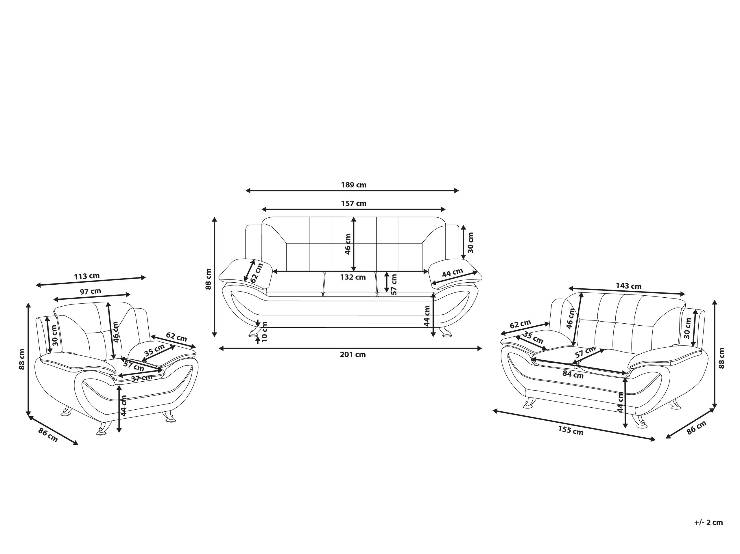 Dimensions du canapé 3 places: 201x86x88