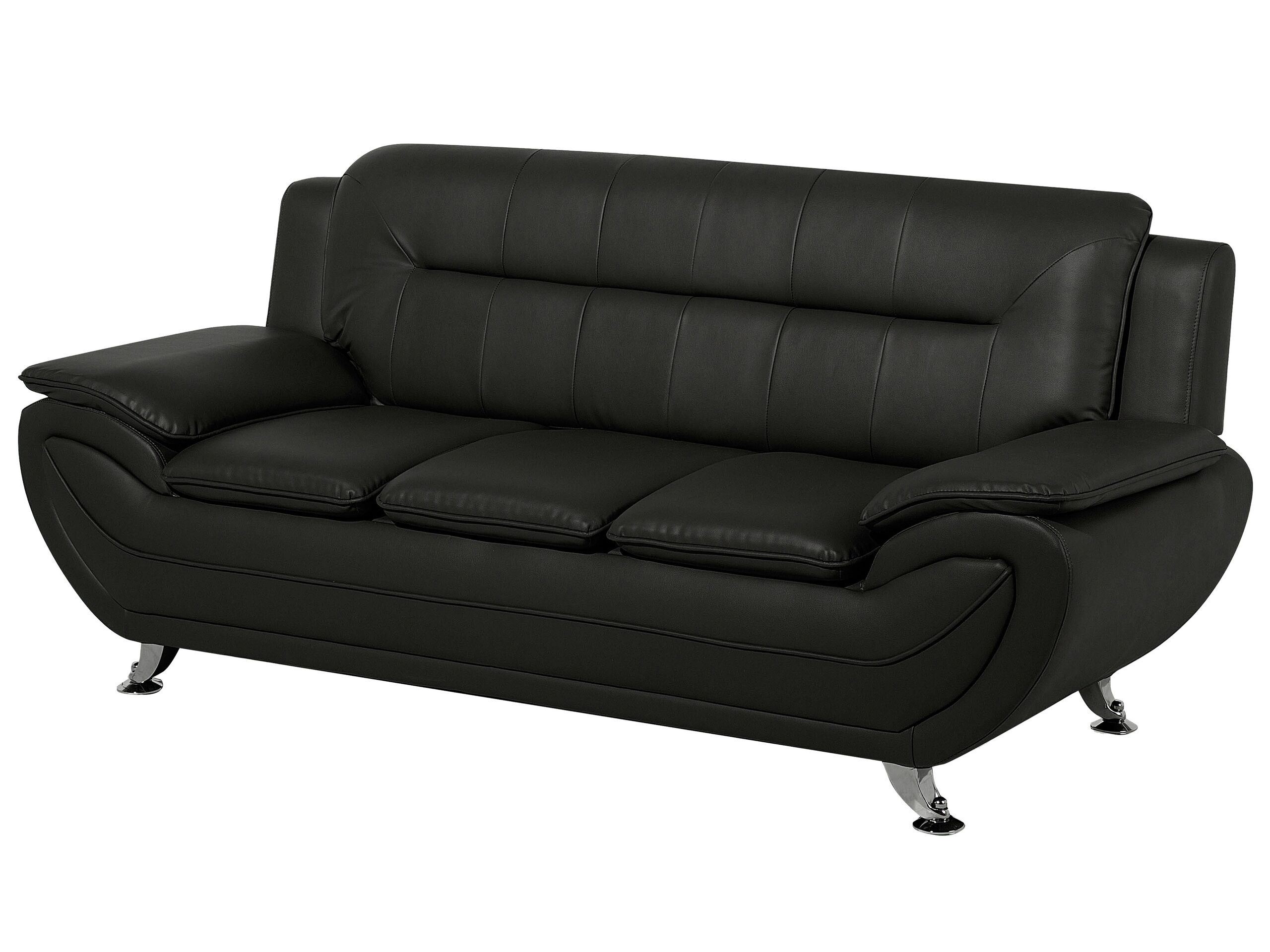 Ensemble canapés et fauteuil en cuir PU noir 6 places LEIRA
