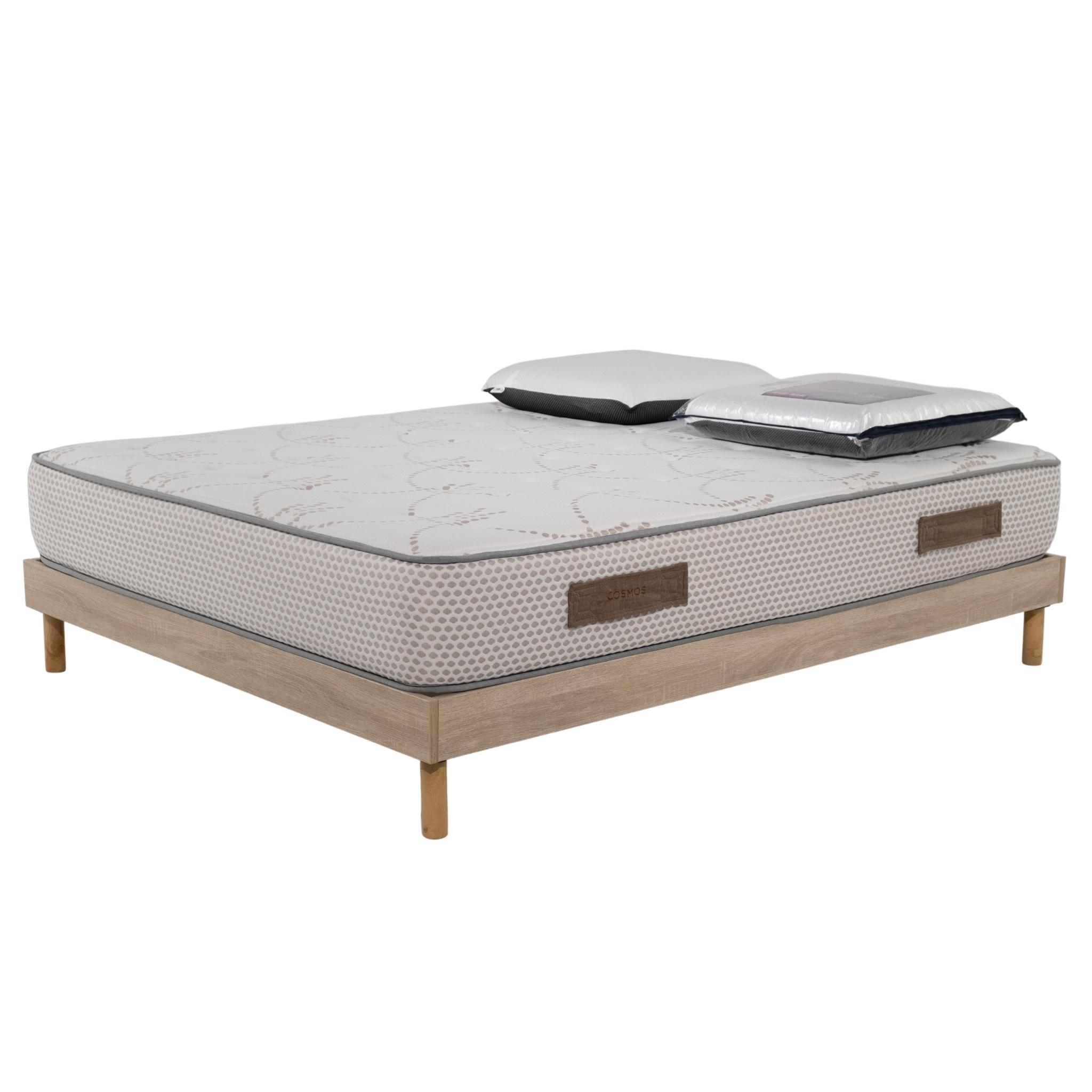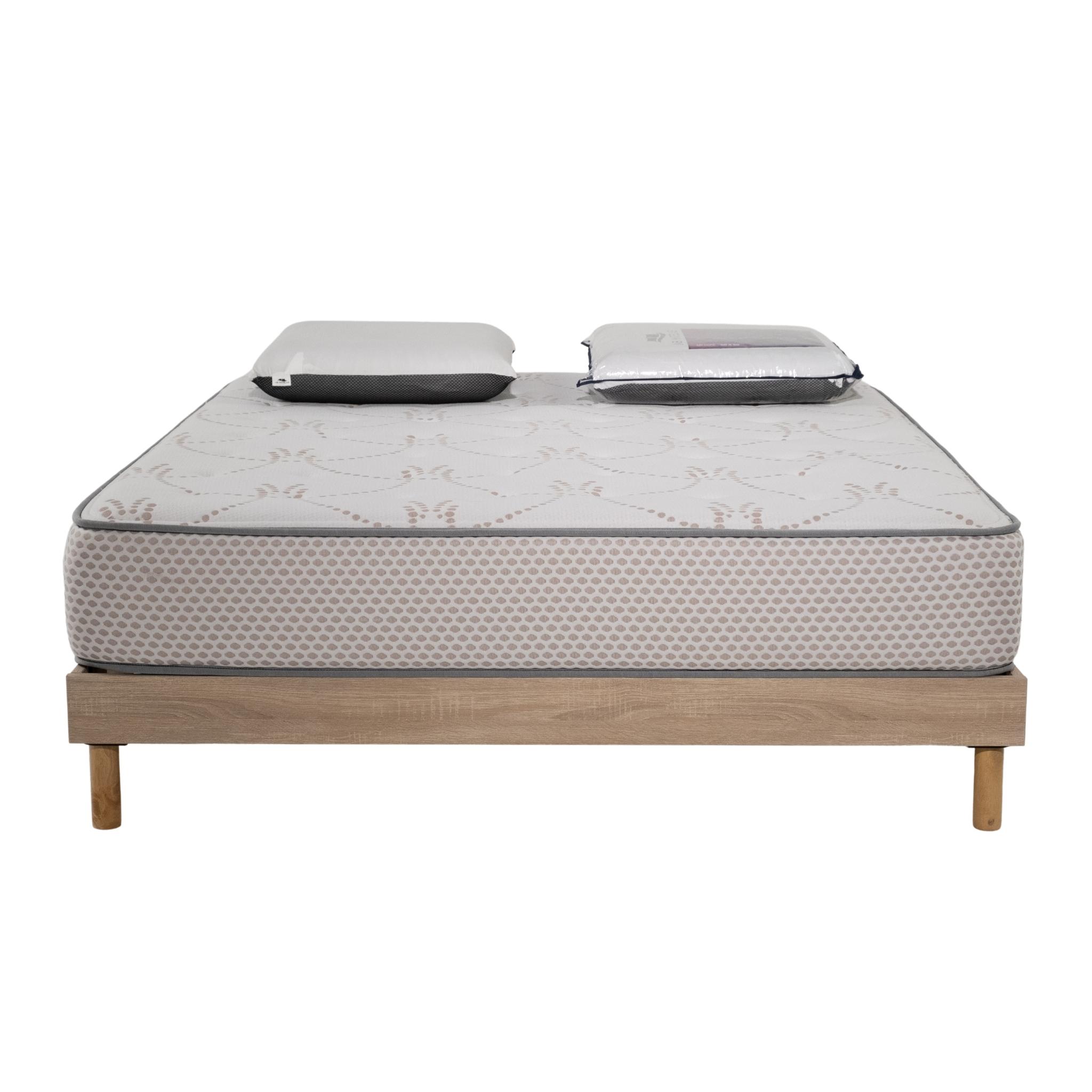 Ensemble Cosmos White mousse accueil mémoire - 140x190 et 2 Oreillers visco - Sommier kit chêne