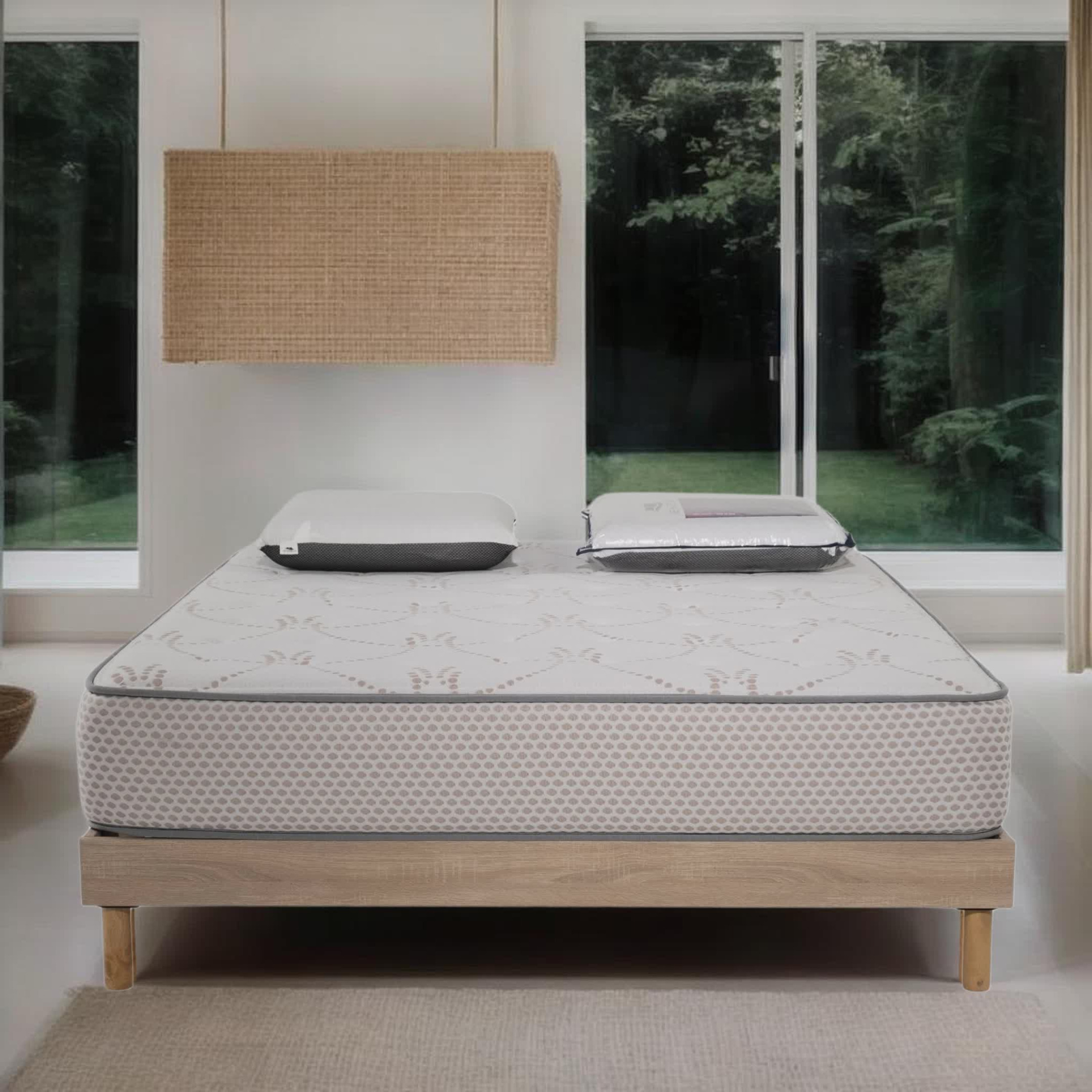 Ensemble Cosmos White mousse accueil mémoire - 140x200 et 2 Oreillers visco - Sommier kit chêne