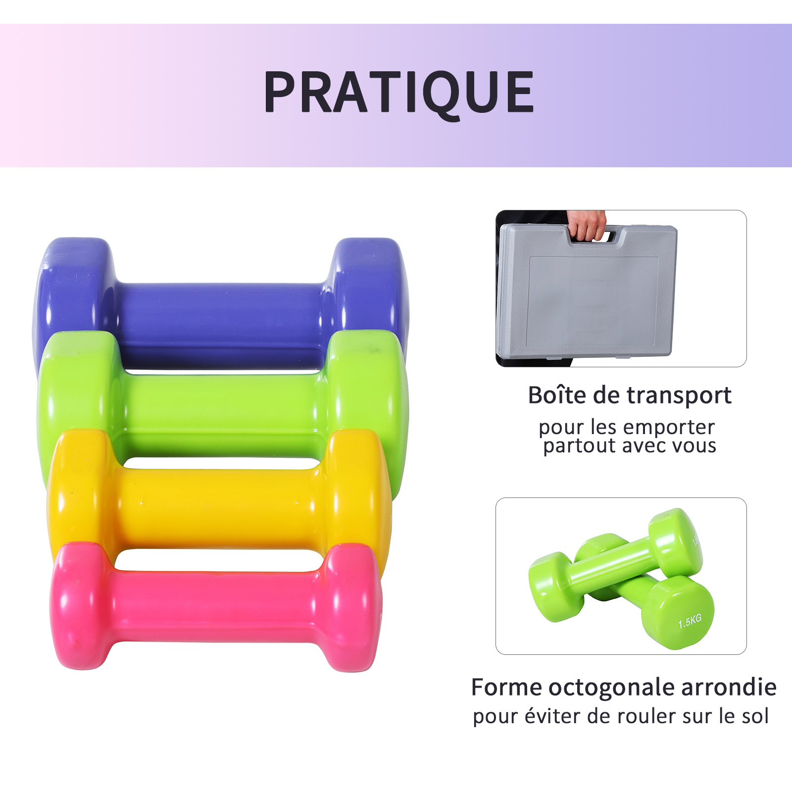 | Libellé | Ensemble d'haltères courtes total 10 Kg - paires de 0,5/1/1,5/2 Kg avec malette - entraînement musculaire & haltérophilie - métal PU multicolore |