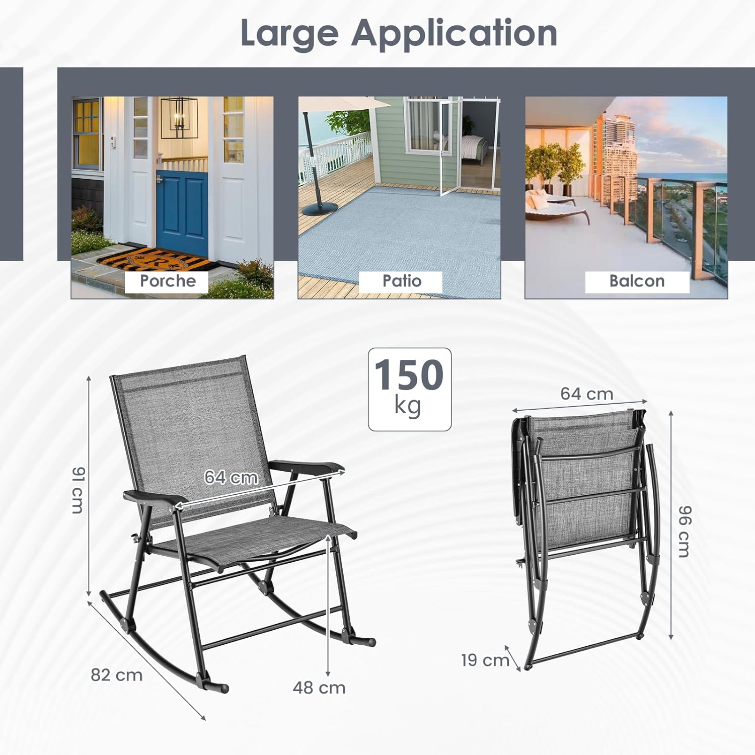 - Aucun assemblage requis : Cet ensemble de chaises de camping à bascule ne nécessite aucun assemblage pour vous faire gagner un temps précieux. Elles peuvent être ouvertes et pliées sans aucun outil, simple et pratique à utiliser. Dimension hors tout : 82 x 64 x 91 cm (L x l x H) ; taille pliée : 96 x 64 x 19 cm (L x l x épaisseur).