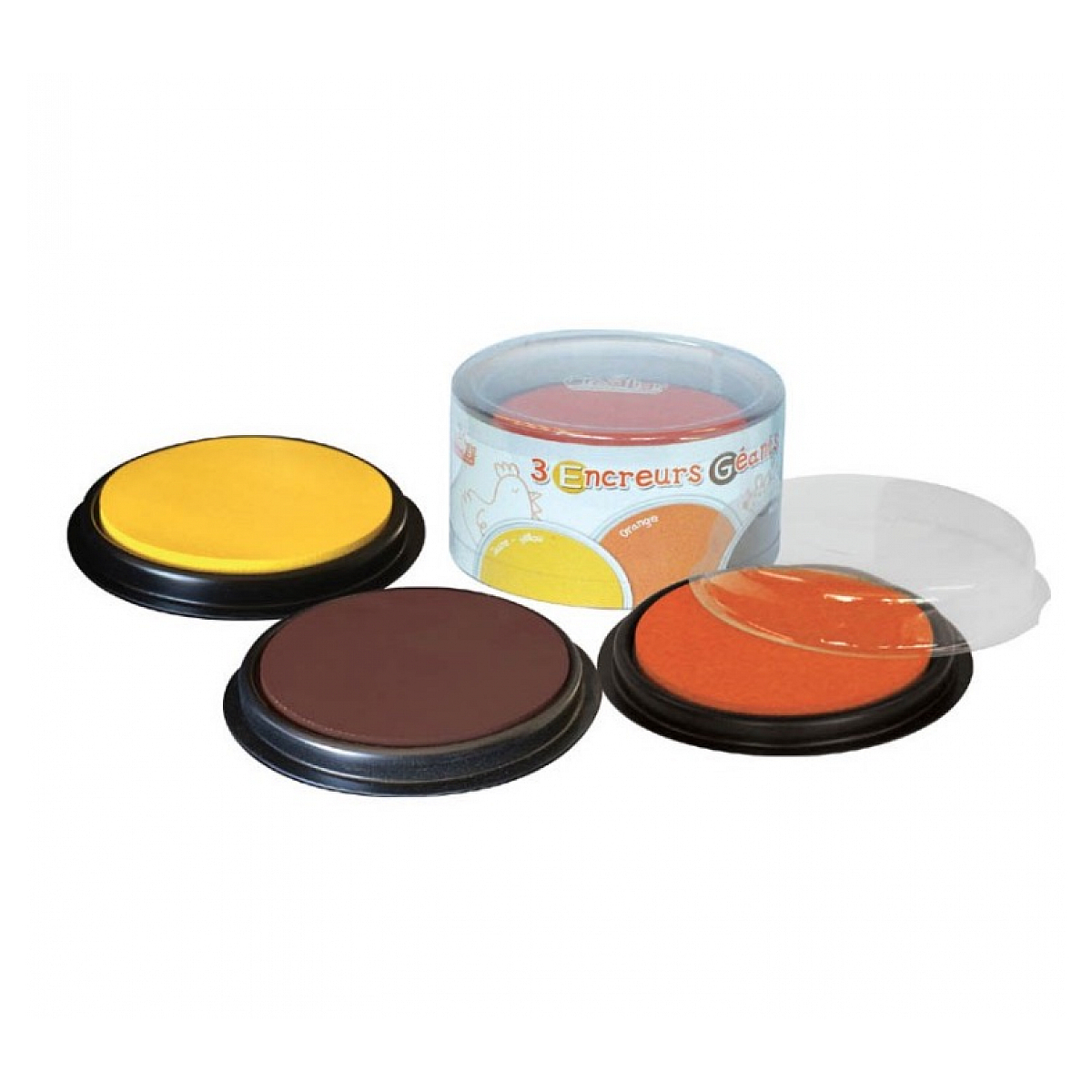 Plus produit Boite de 3 encreurs géants ronds orange - jaune - marron.