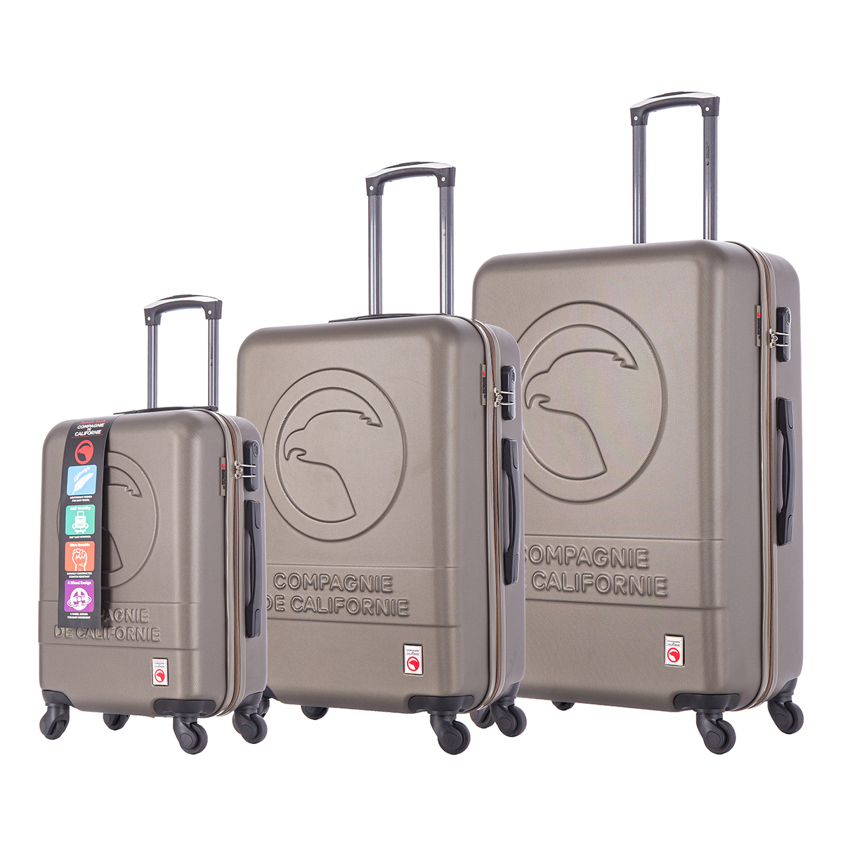 | Libellé | Ensemble de 3 valises à roulettes gold - cc-t243 gold - compagnie de californie |
