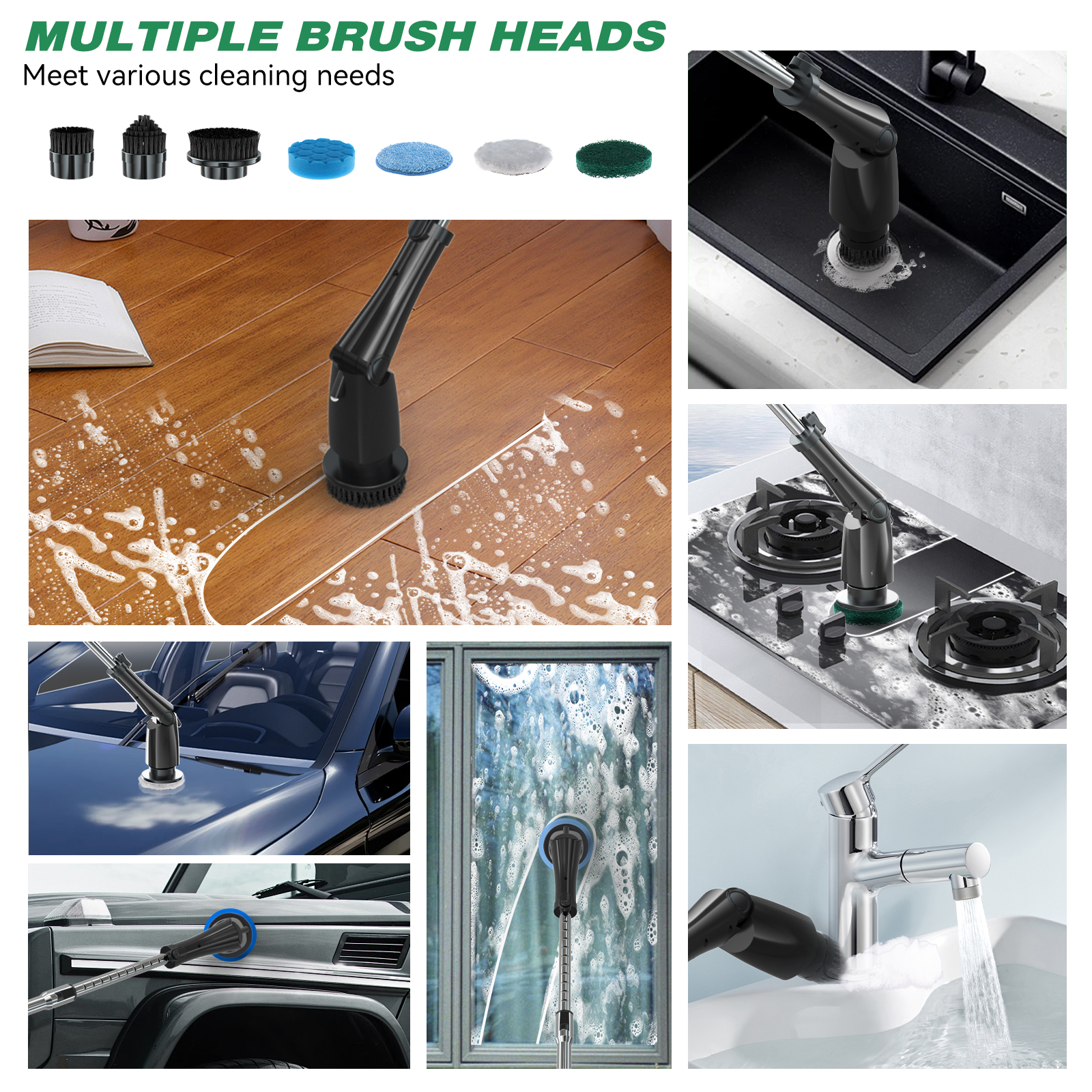 Nettoyage polyvalent : L'ensemble est livré avec trois têtes de brosse différentes et cinq chiffons en microfibre, offrant une polyvalence pour diverses tâches de nettoyage. Les têtes de brosse conviennent pour frotter les coulis, les carreaux et autres surfaces, tandis que les chiffons en microfibres sont idéaux pour essuyer les surfaces et enlever la poussière.