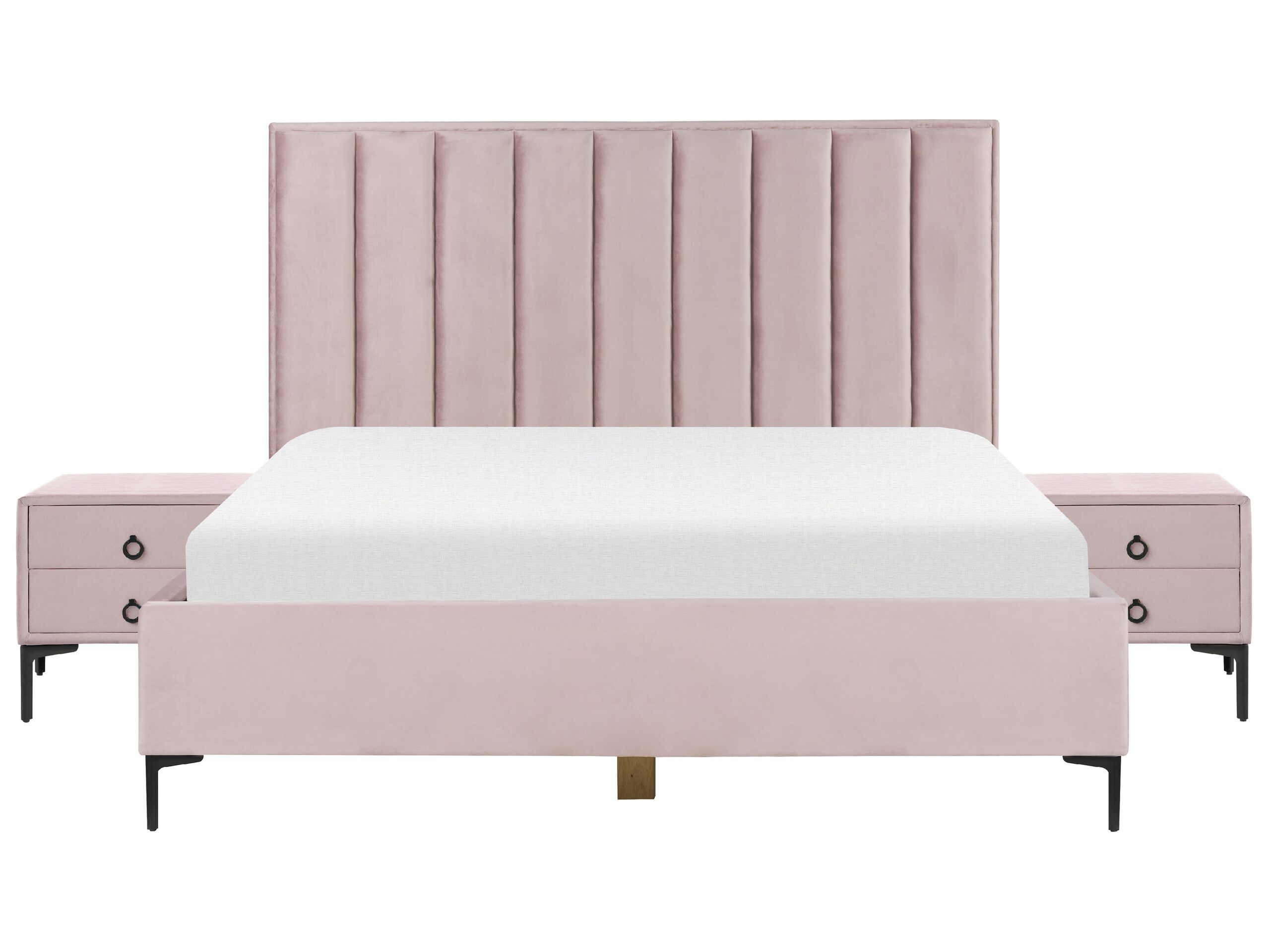 Ensemble de chambre en velours rose avec lit double 180 x 200 cm SEZANNE