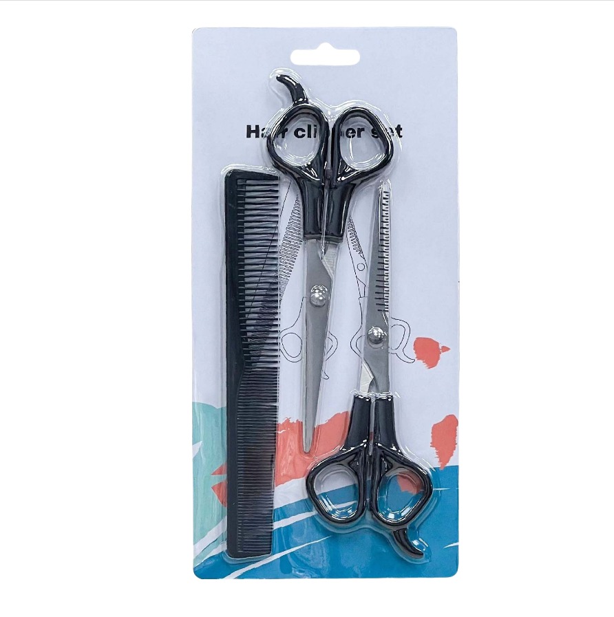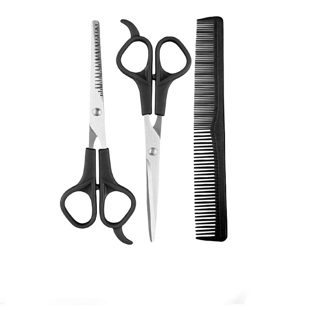 Ensemble de Coiffure 3 Pièces Professionnel : Ciseaux à Frange et Kit de Coupe de Cheveux Black