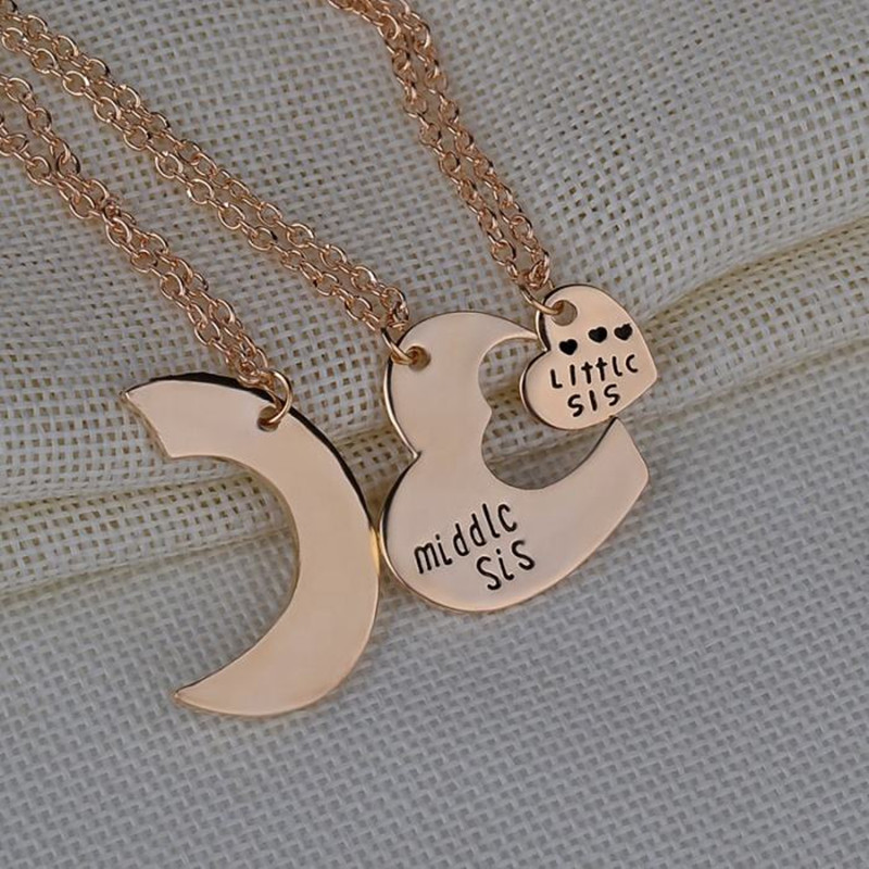 Ensemble de colliers pour grande, moyenne et petite sœur – Cadeau de bijoux familial idéal Gold