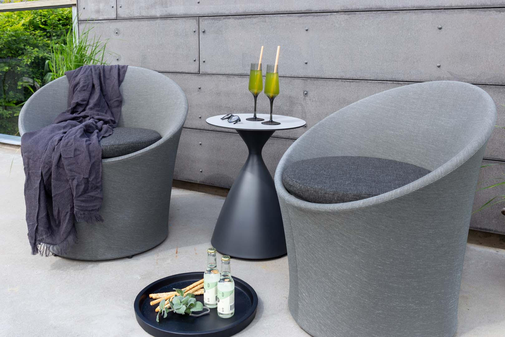 Ensemble de meubles de salon Spoga 3 pièces noir, gris est un meuble de salon de couleur noire qui apporte à la fois style et fonctionnalité à votre maison. Ensemble de meubles de salon Spoga composé de 3 parties noir, gris. Chaise 2 pièces. gris avec. coussins, L X H X P cm: 67/73/58, Hauteur d'assise cm: 41, Profondeur d'assise cm: 47,5, Poids max kg.: 120. Table noireL X H X P cm: 40/52/40. Ce produit est créé avec un souci du détail, ce qui garantit à la fois un attrait esthétique et une grande durabilité. Il est conçu dans un souci à la fois de fonctionnalité et de style, ce qui en fait le choix parfait pour n’importe quelle pièce de votre maison. Les matériaux utilisés sont de haute qualité, ce qui confère au produit une longue durée de vie et lui permet de résister à une utilisation quotidienne. Que ce soit pour le rangement ou comme ajout décoratif, ce produit rehaussera votre décor et apportera plus de confort et d'élégance à votre maison.