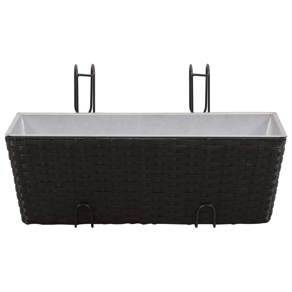 Ensemble de jardinières de balcon Trapèze Rotin 50cm 2 pcs Noir