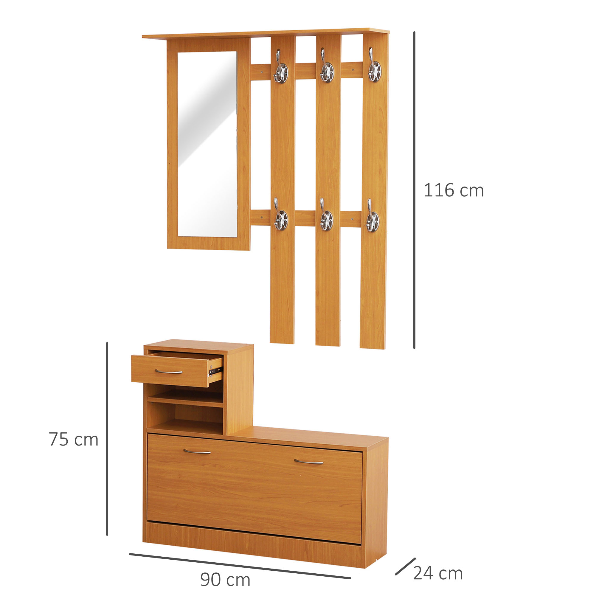 - Ensemble de meubles d'entrée composé de 3 pièces : meuble à chaussures, panneau porte-manteau et miroir