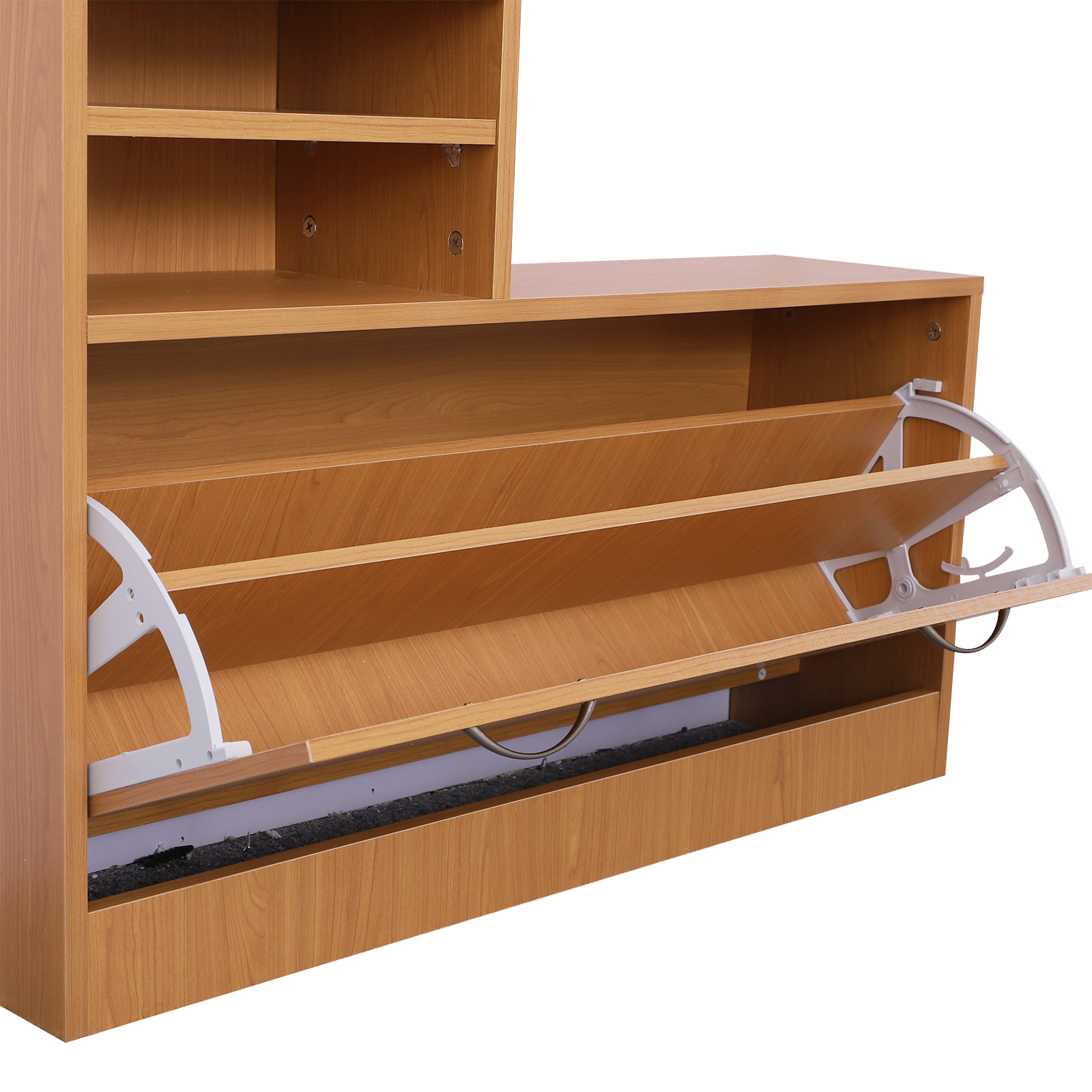 - Meuble à chaussures multi rangements : double niveau rangement chaussures, 2 niches, tiroir coulissant et 2 plateaux