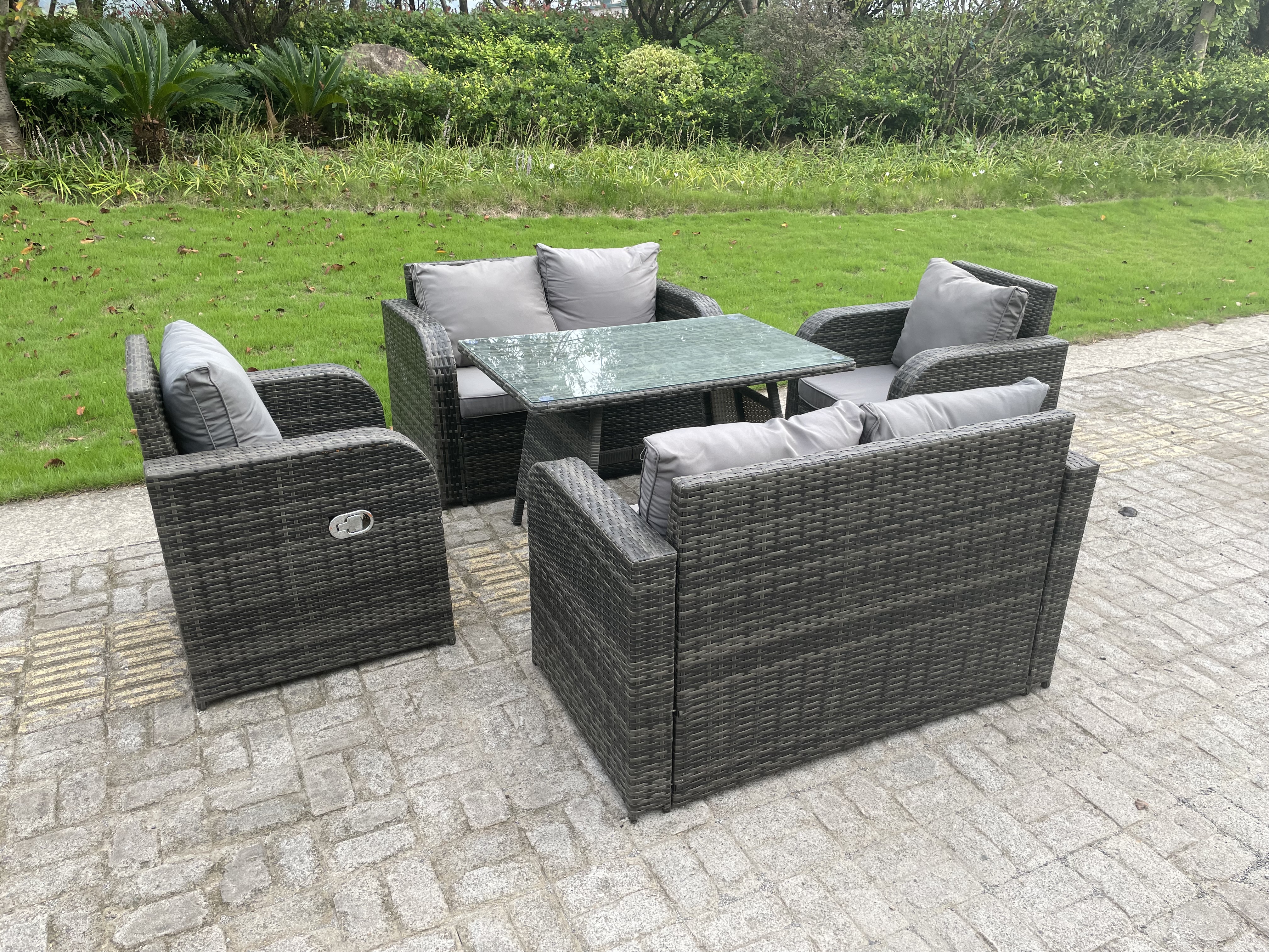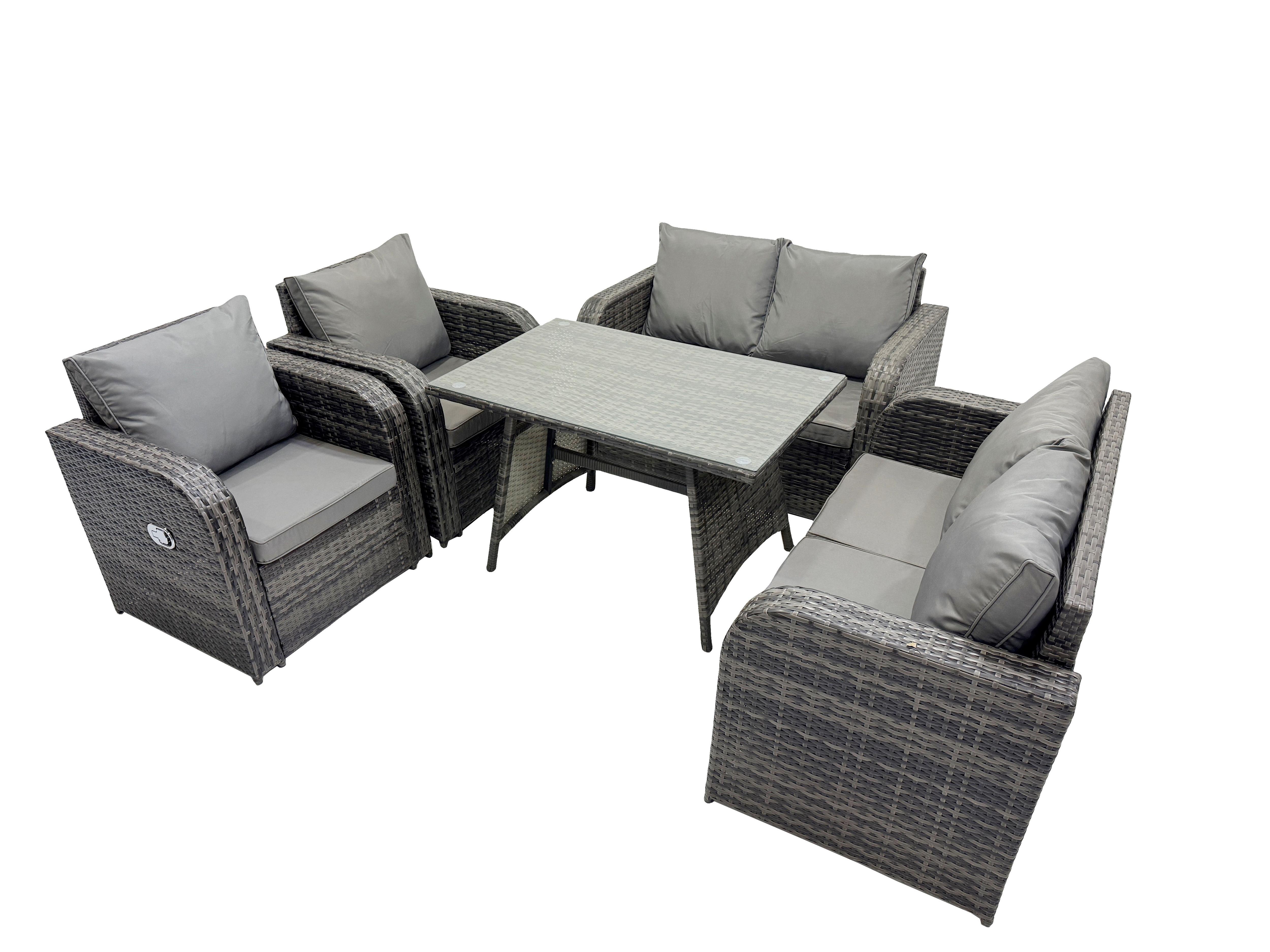 Ensemble de meubles de jardin en polyrotin Table à manger Chaise inclinables Canapé d'amour 6 places