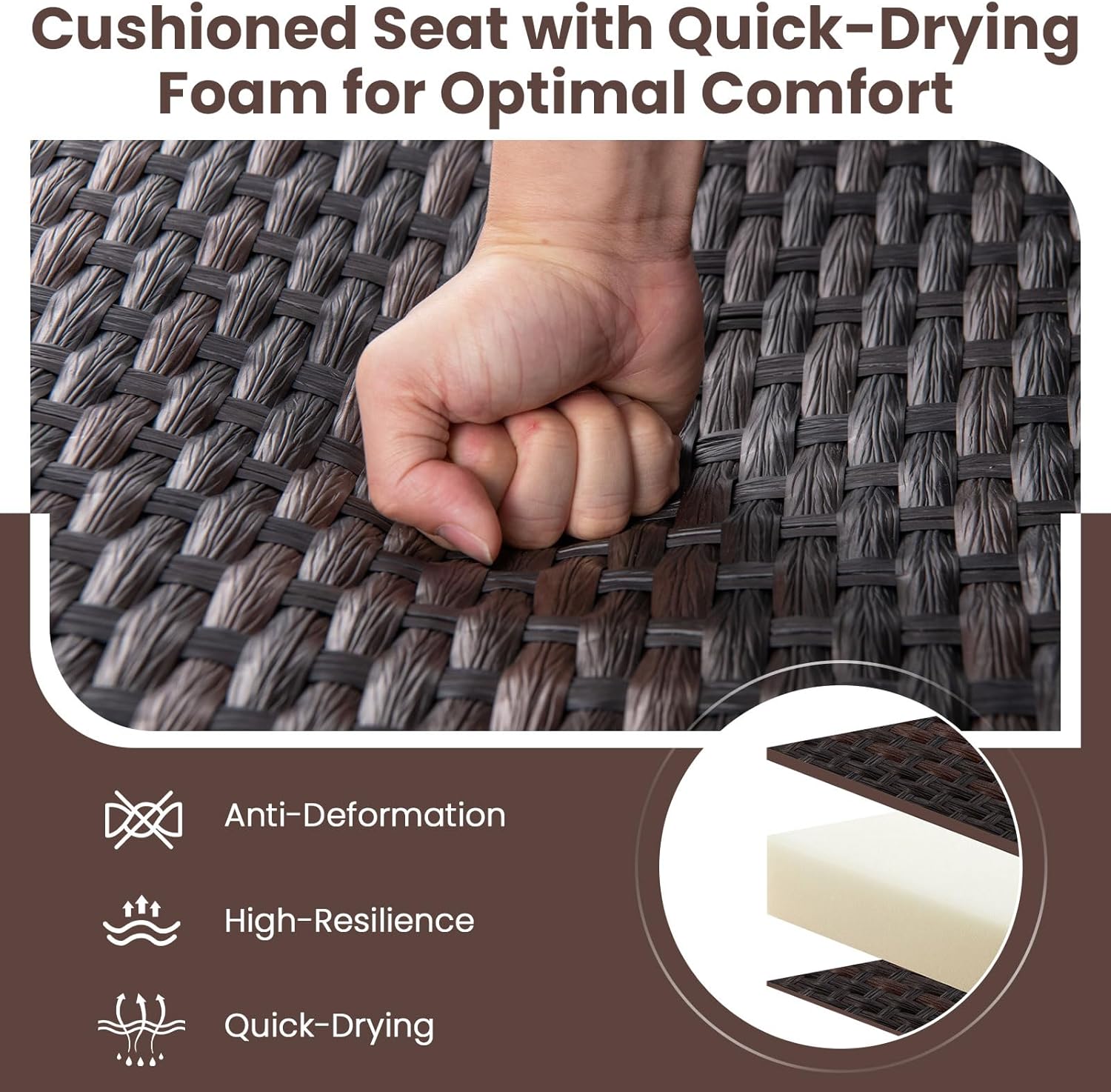- Rotin de qualité supérieure : tressé en rotin PE de qualité supérieure, cet ensemble de meubles de jardin est extrêmement résistant aux UV, à la lumière et imperméable, et offre une excellente respirabilité et un toucher agréable.