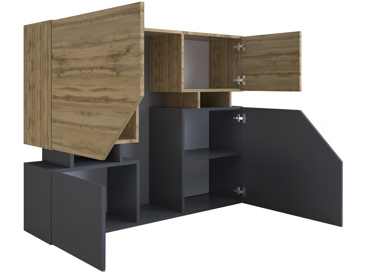 Ensemble de salon "Ceelias" - Buffet haut + table basse + meuble tv - Noir/Marron