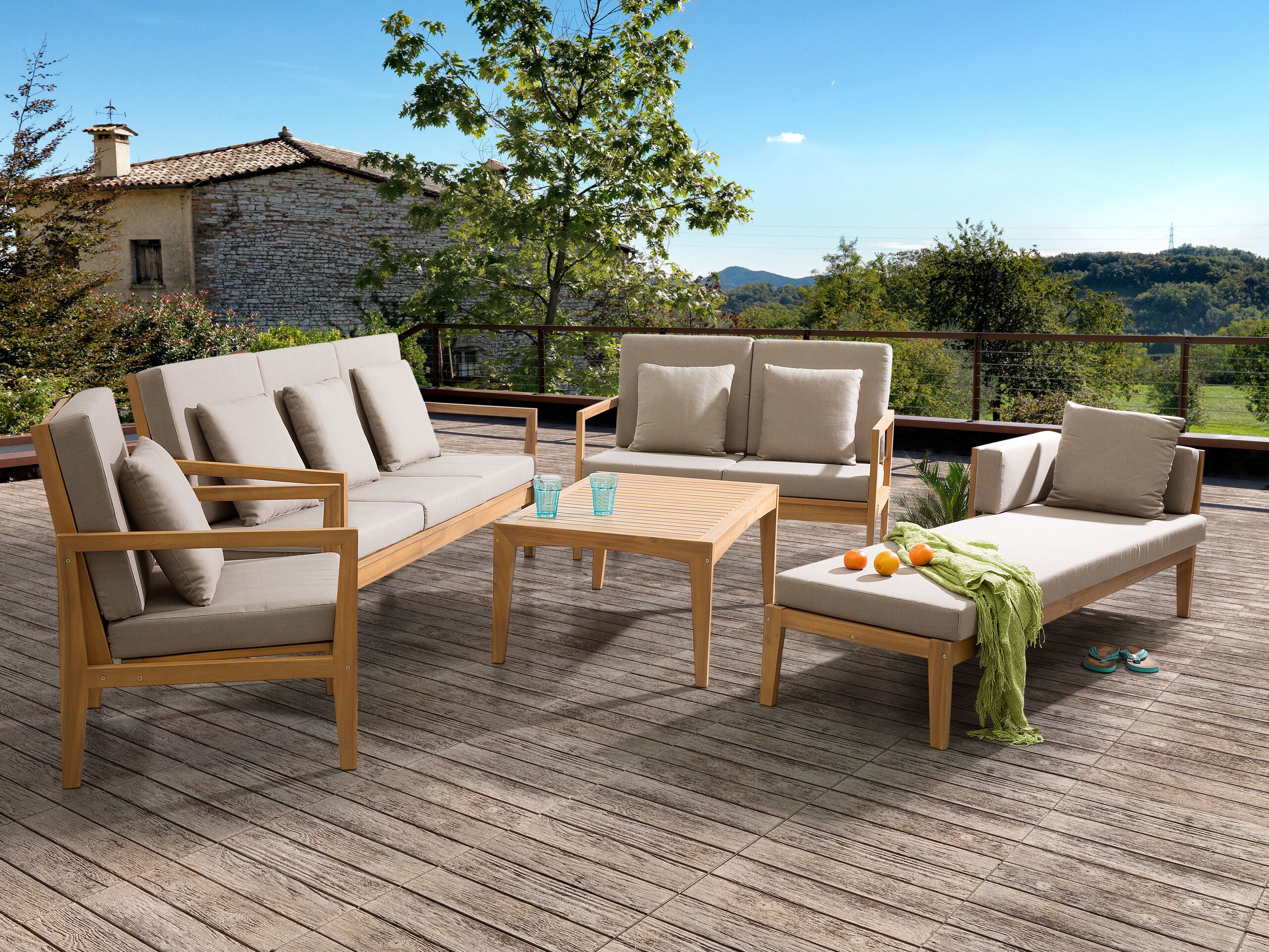 Caractéristiques clés: Le complément idéal pour le jardin, Chaque pièce est unique, grâce au grain et nœuds naturels, Cadre robuste, UV Résistance 3 (ISO 105-B02), Pour préserver la qualité du produit, il faut le protéger de l'eau et de la pluie. Housses amovibles
