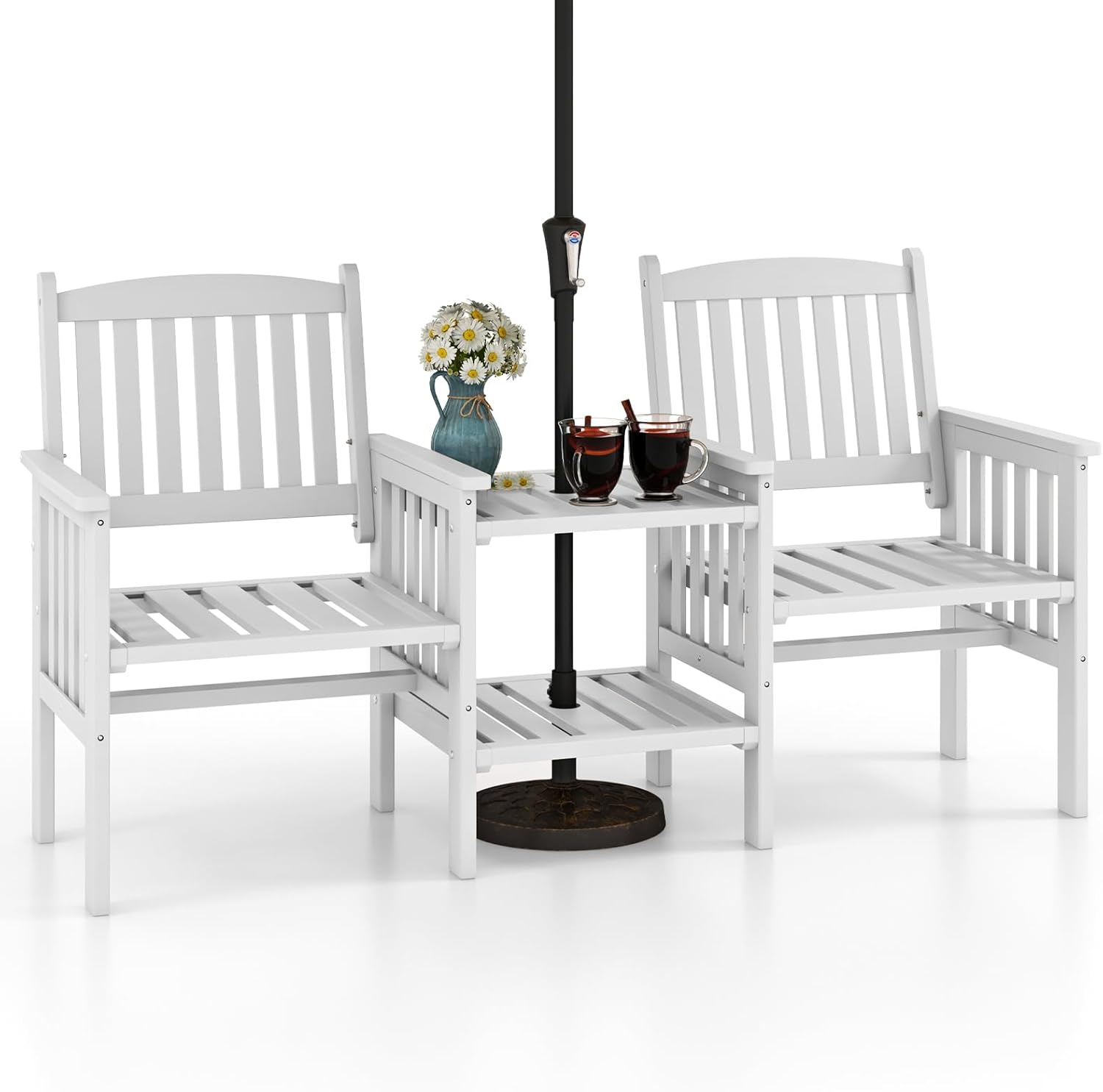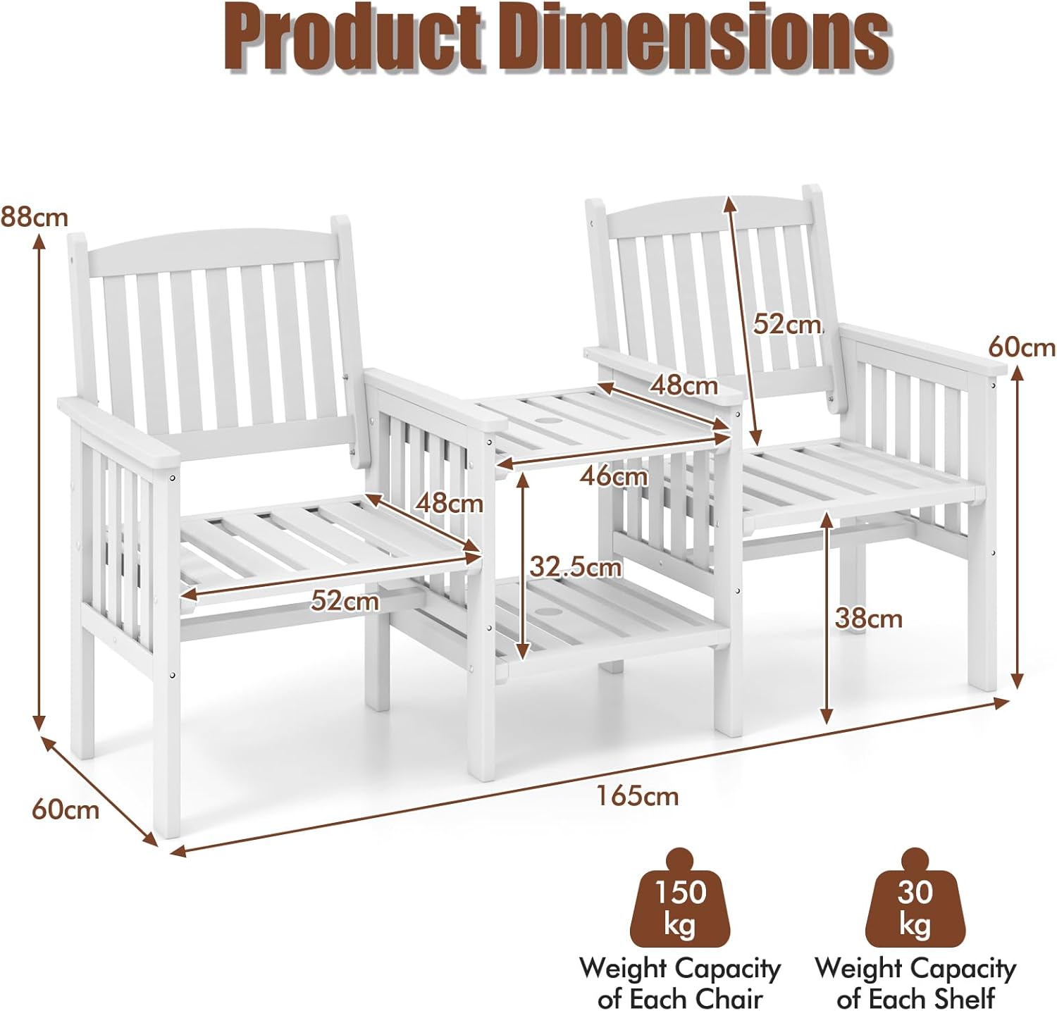 | Libellé | Ensemble de salon de jardin en une pièce, bois massif, 1 table avec trou pour parasol & 2 fauteuils blanc |