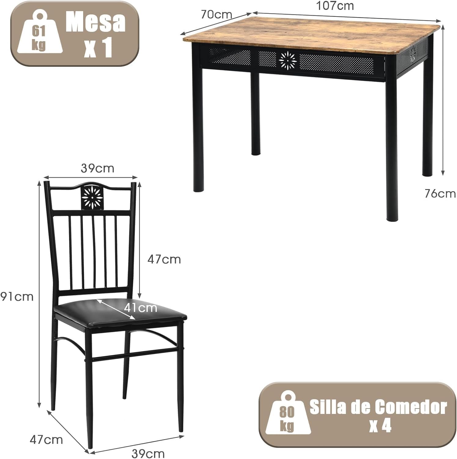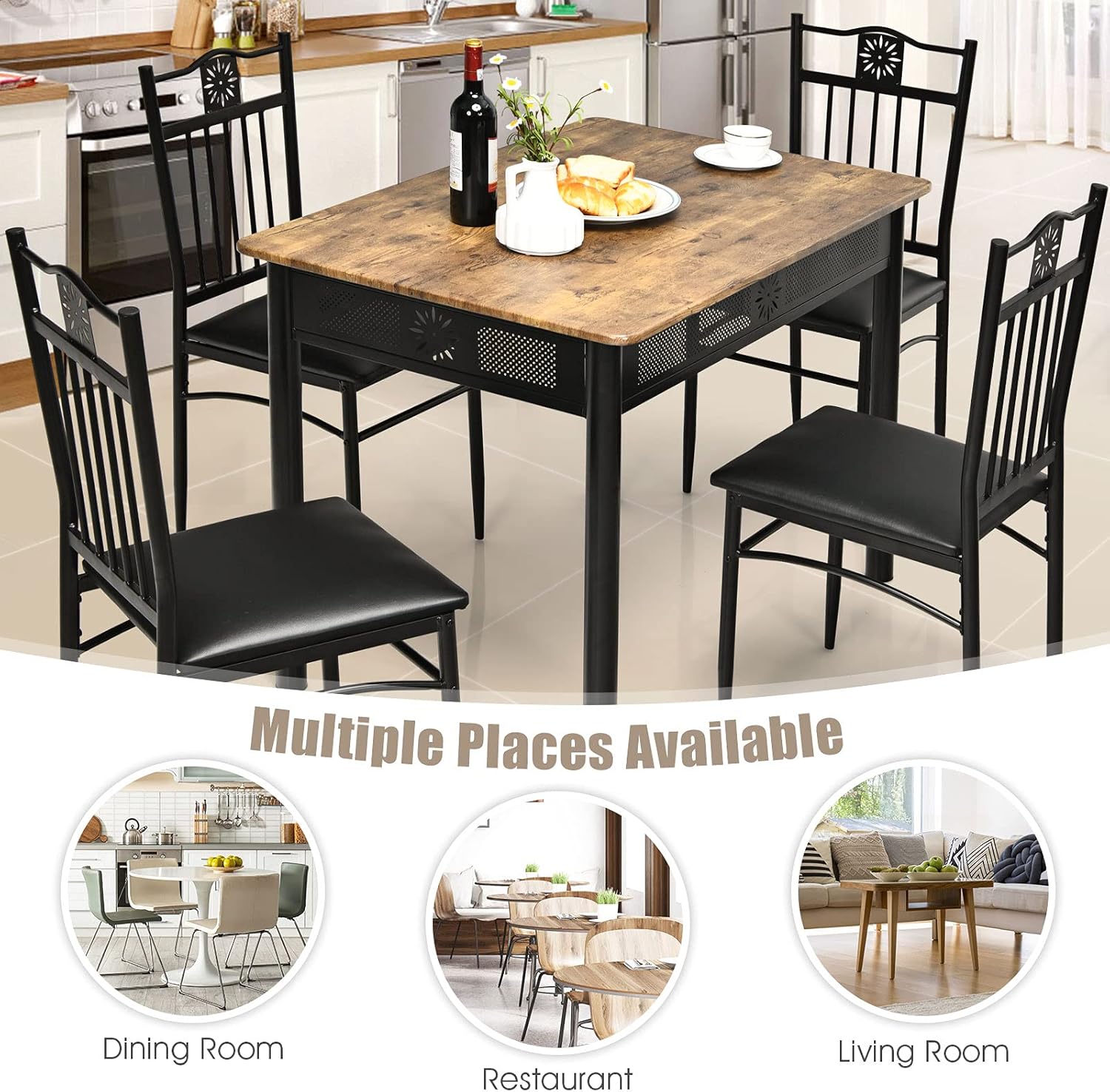 - Construction robuste et durable : fabriqué avec une structure en acier peint, cet ensemble de meubles de salle à manger est robuste avec une bonne capacité de charge. En outre, le panneau en bois d'ingénierie bien sélectionné est robuste avec une longue durée de vie. Les coussinets de pieds équipés augmentent la stabilité et empêchent les rayures sur le sol.
