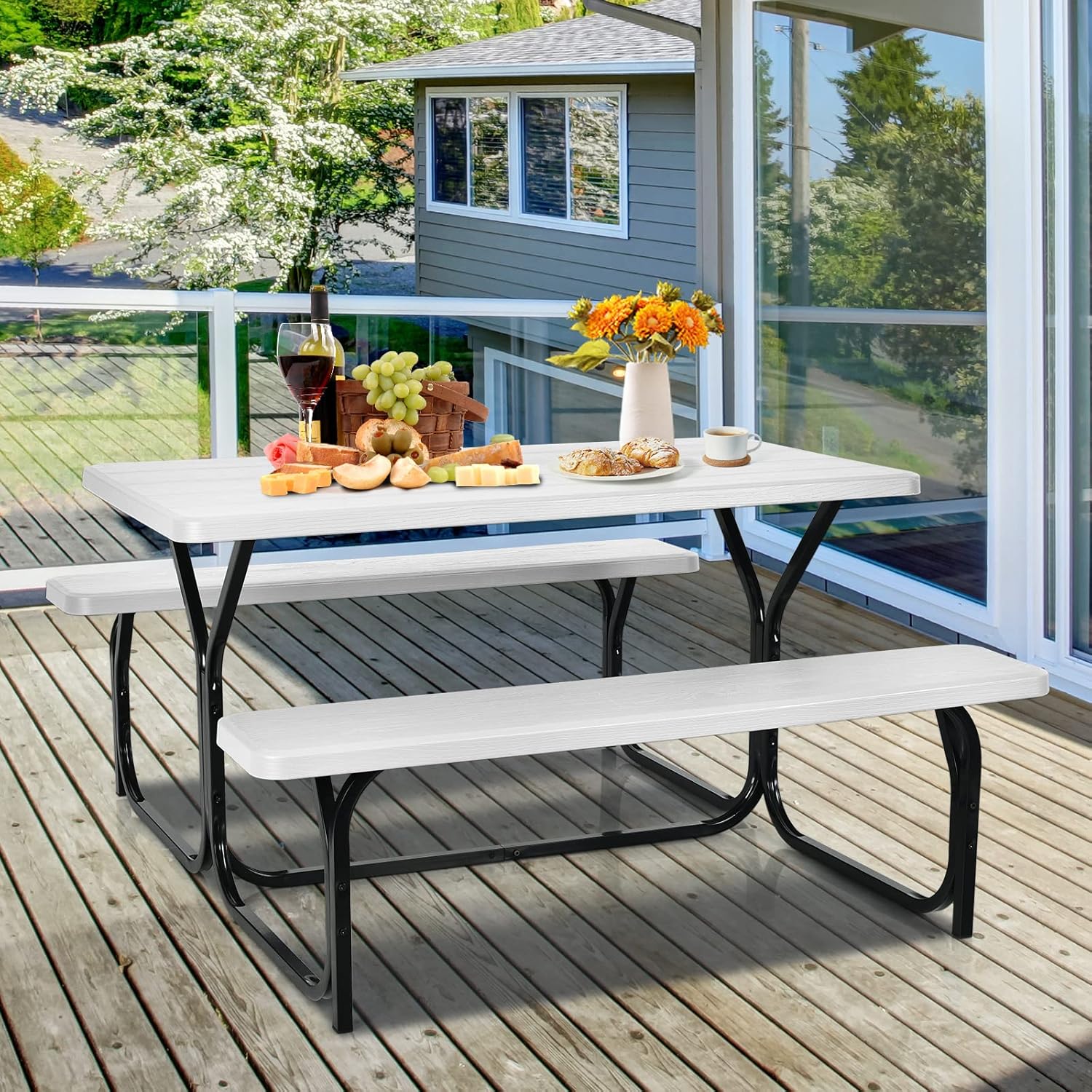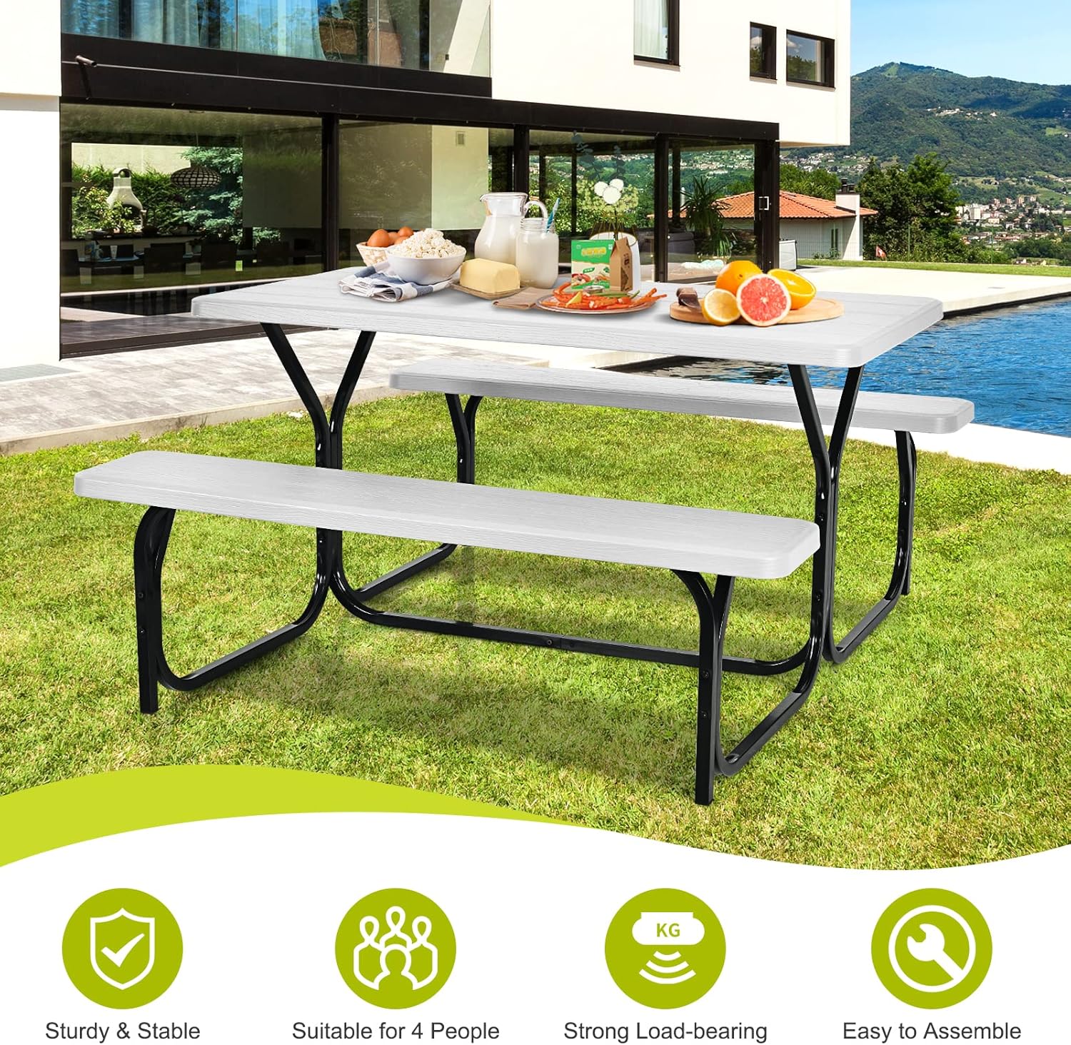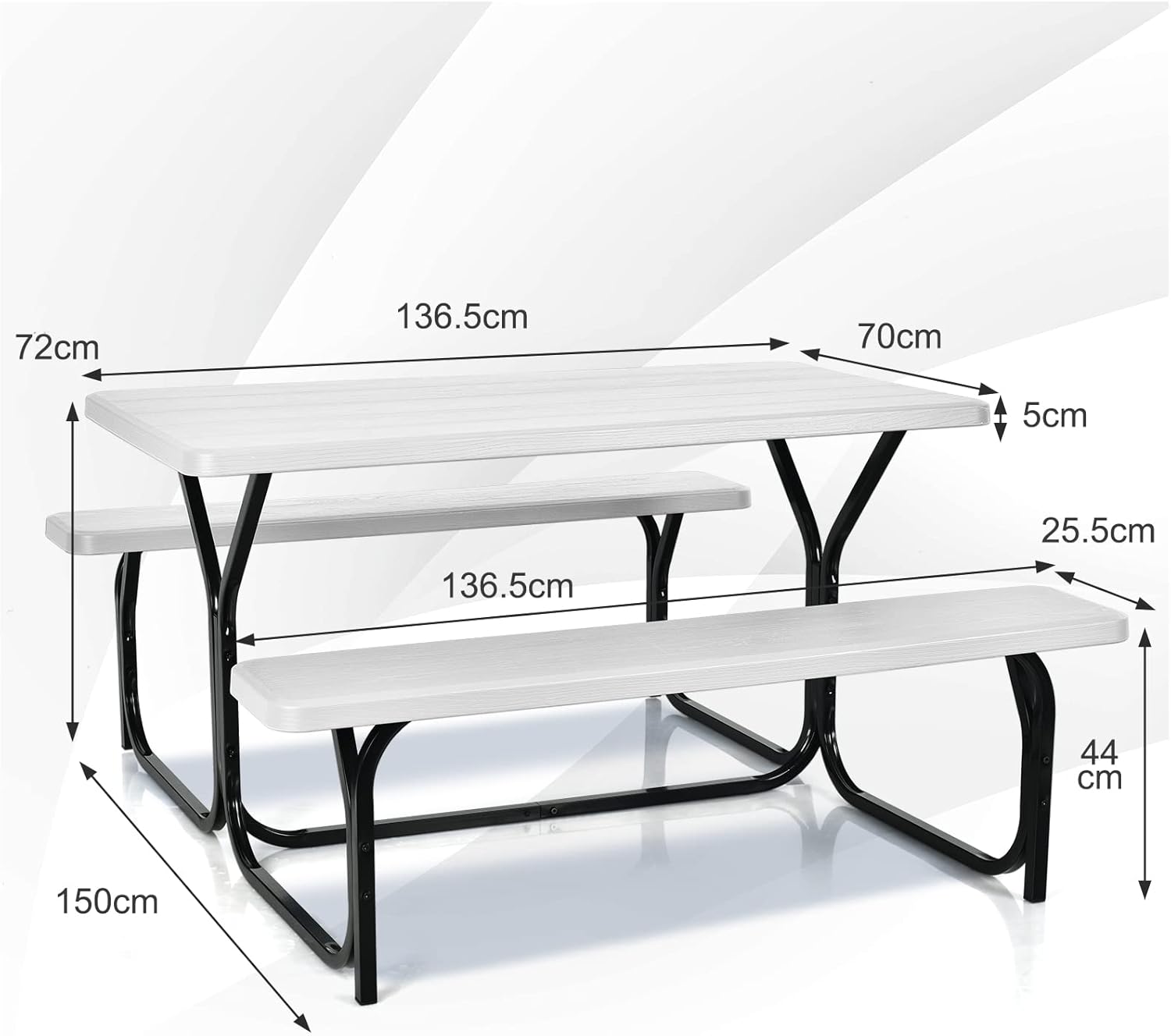 - Matériaux PEHD Durable : Cet ensemble table et bancs est fait de HDPE résistant à l’usure, résistant aux chocs, résistant à la corrosion, adapté à une utilisation prolongée en extérieur. De plus, ce matériau imperméable facilite le nettoyage.