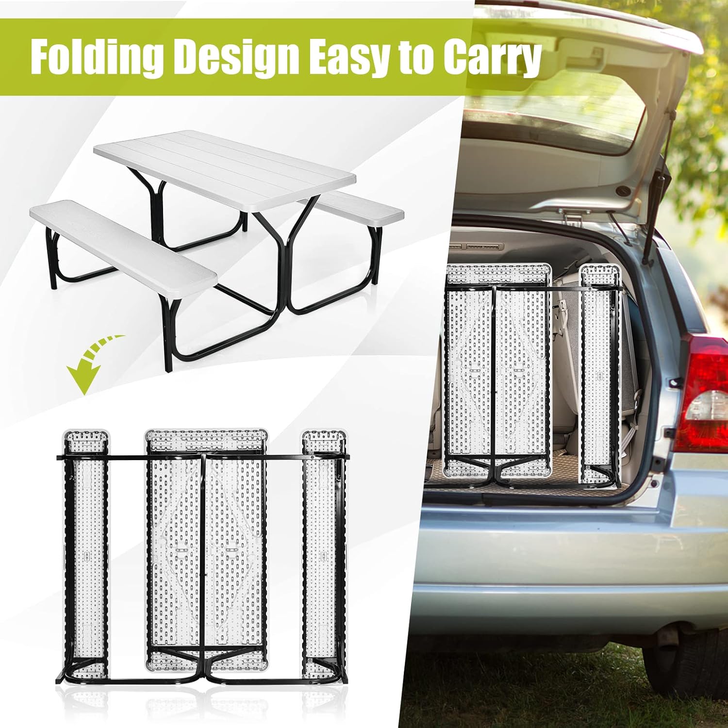 | Libellé | Ensemble de table de camping pliable avec cadre en métal, ensemble table et bancs en PEHD, pour 4 personnes, pour jardin, piscine, patio |