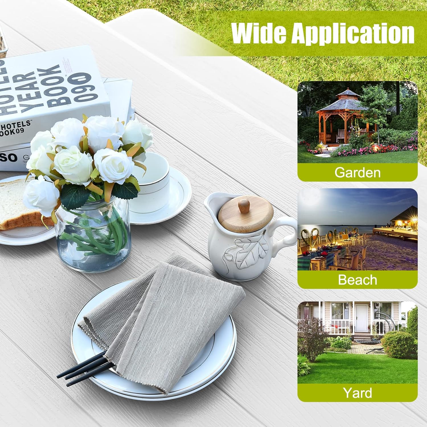- Aspect Exquis & Large Application : Son design simple et ses lignes lisses lui permettent de s'adapter à un large éventail d'occasions. Le grain de bois exquis la table de camping rehausse sa beauté, idéale pour les pique-niques, les barbecues et autres activités de plein air.