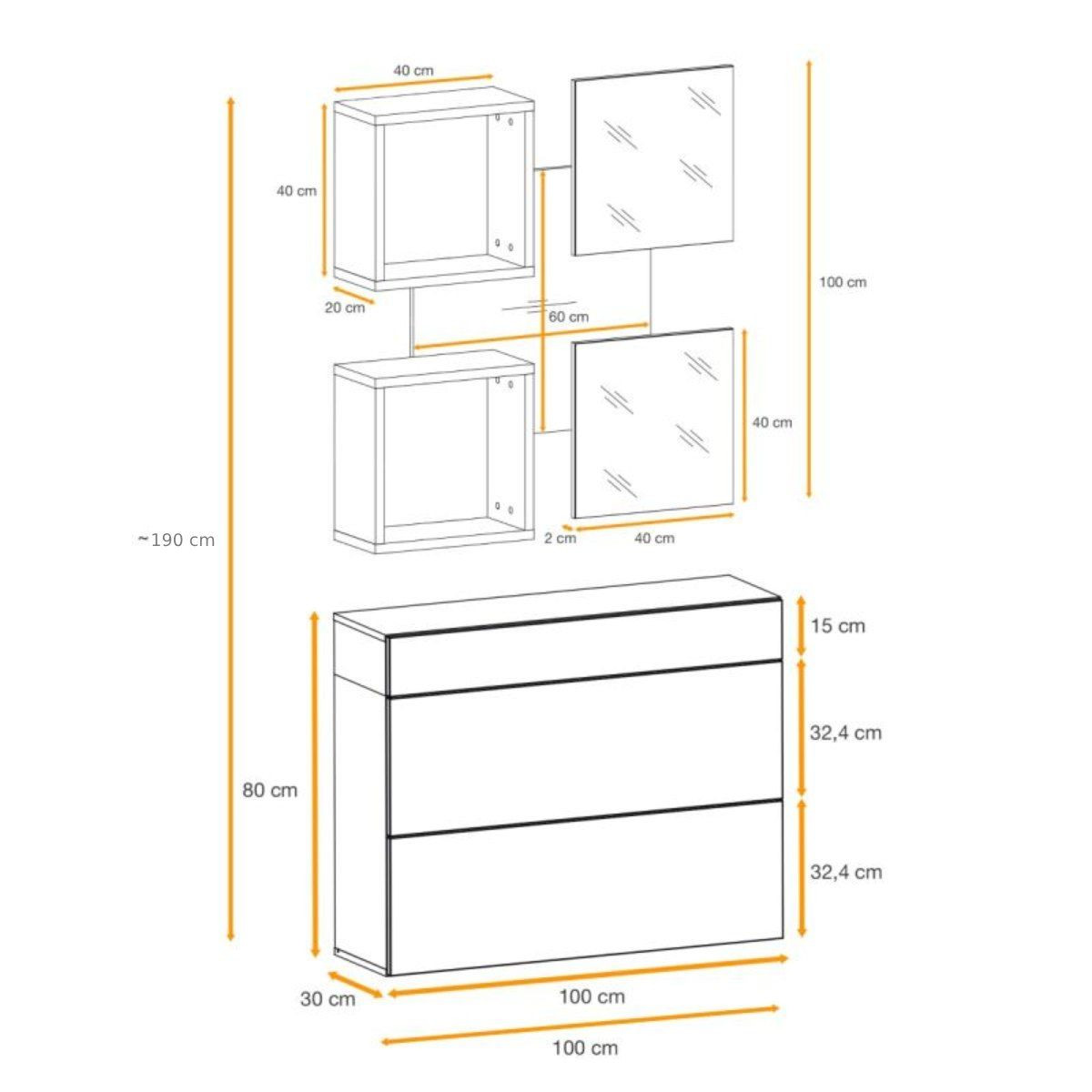 • 1 x Panneau Mural, 2 Étagères