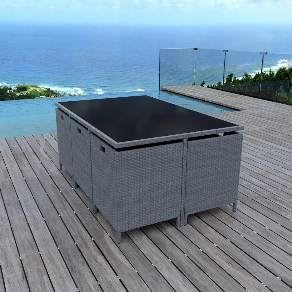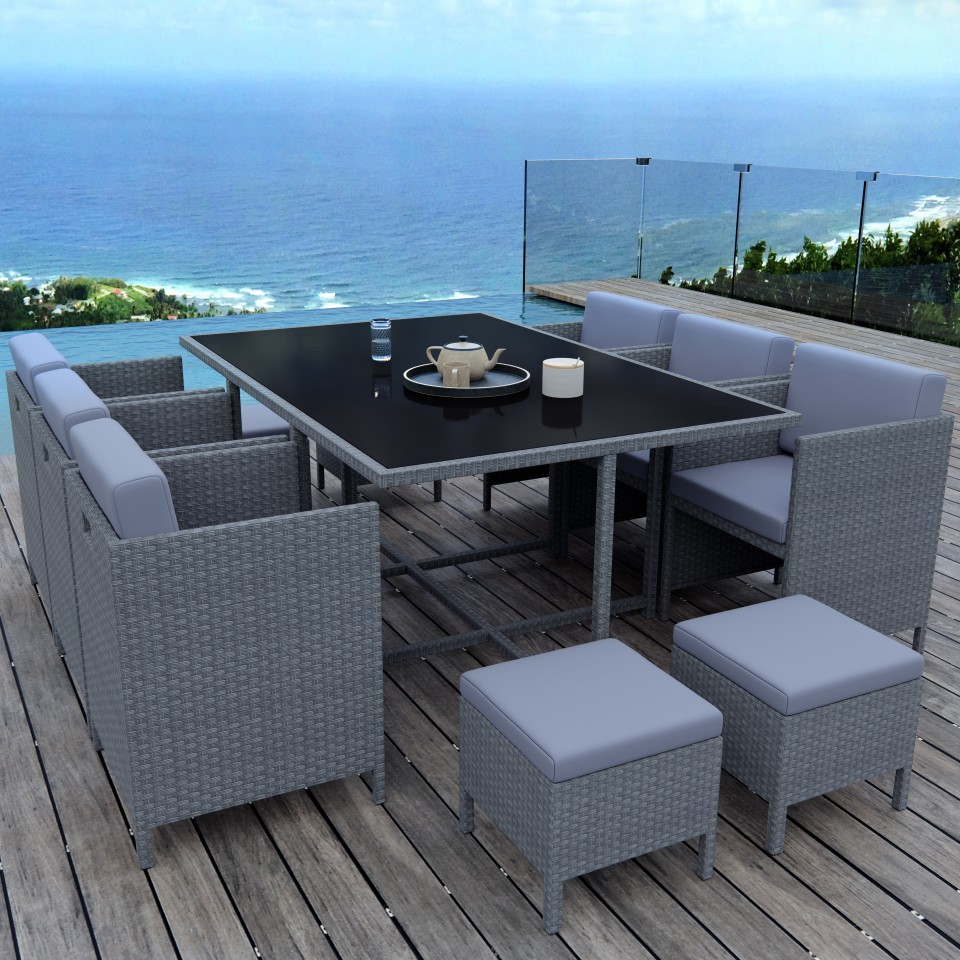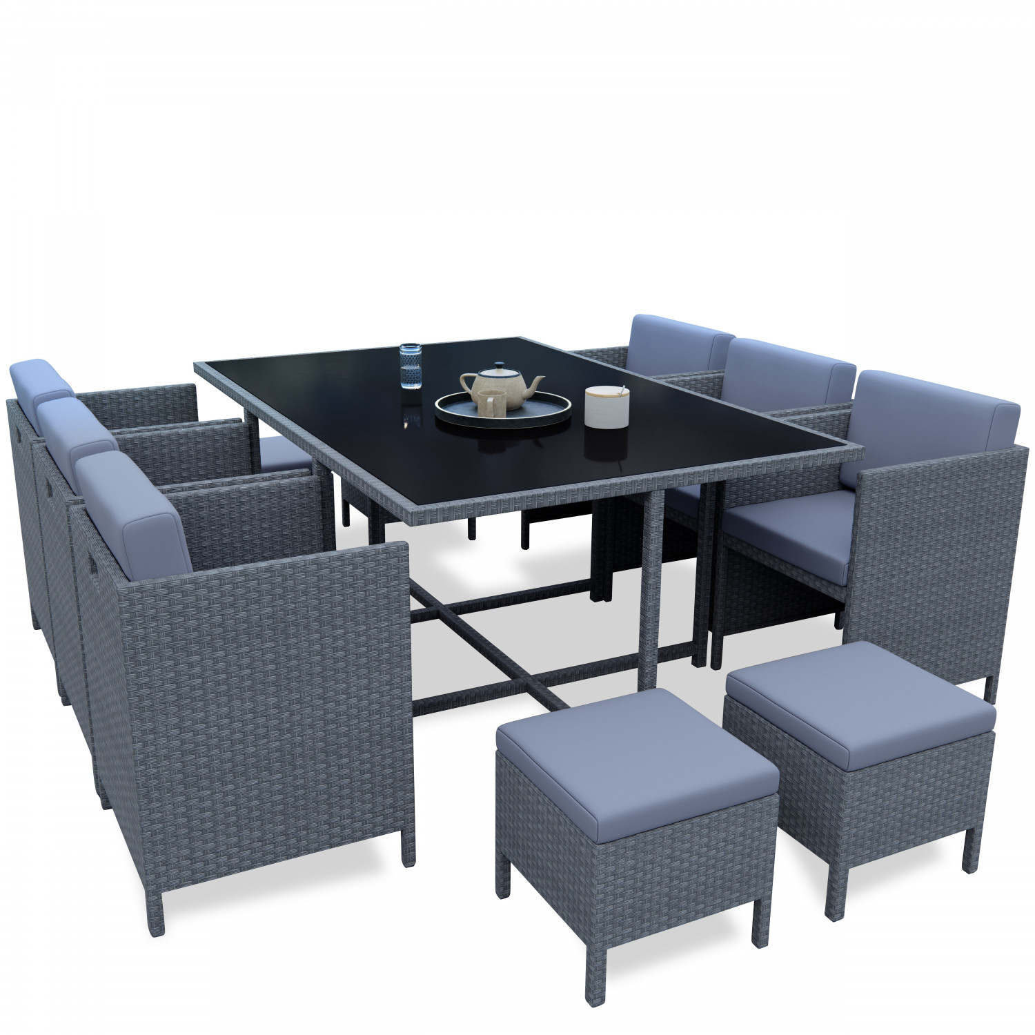 Ensemble encastrable salon / table de jardin résine tressée - Gris/Gris - MUNGA 10