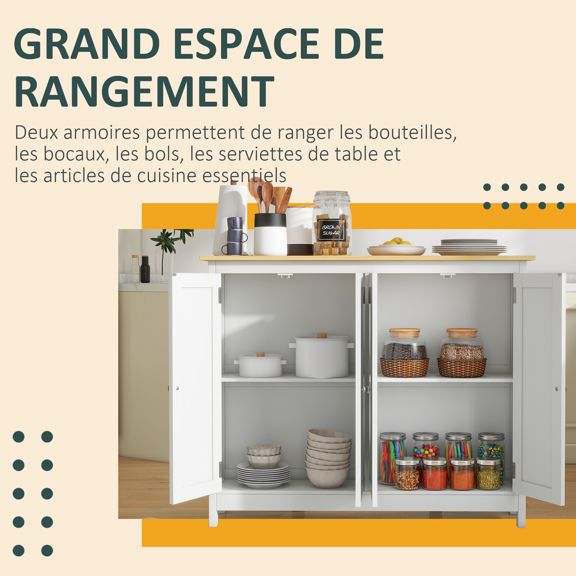 Ensemble îlot central de cuisine avec 2 tabourets de bar - 4 portes, 2 étagères - plateau, pans rabattabl