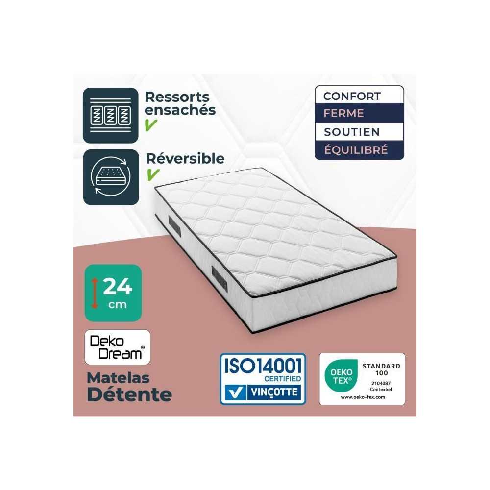 ensemble matelas et sommier somnis bedding new detente 90 x 190 cm - 24 cm - ressorts ensachés 7 zones