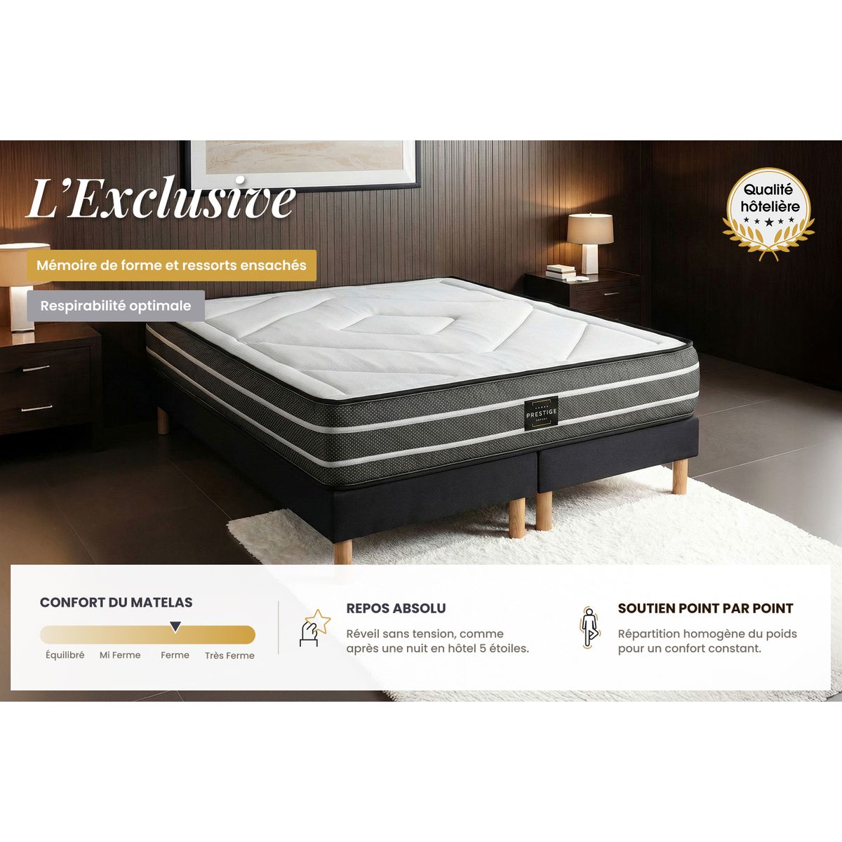 Ensemble matelas Exclusive - Ressorts ensachés et mémoire de forme - Ep : 22 cm - Ferme - Sommier kit Bla