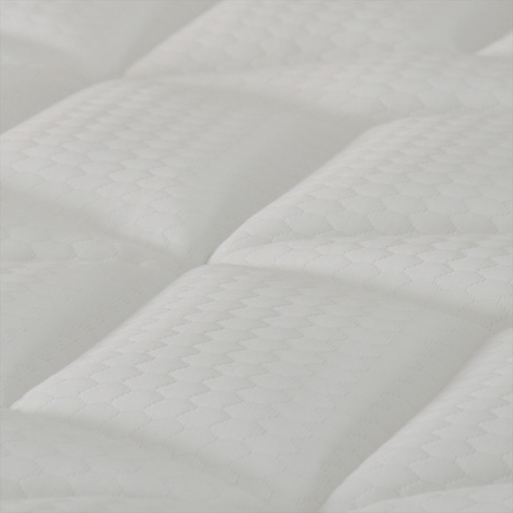 | Coutil | Platebande velours - 4 poignées de retournement - Tissu stretch 100% polyester (face couchage) / Tissu antidérapant (face sommier) - Garnissage : Fibres creuses siliconées (face couchage) |