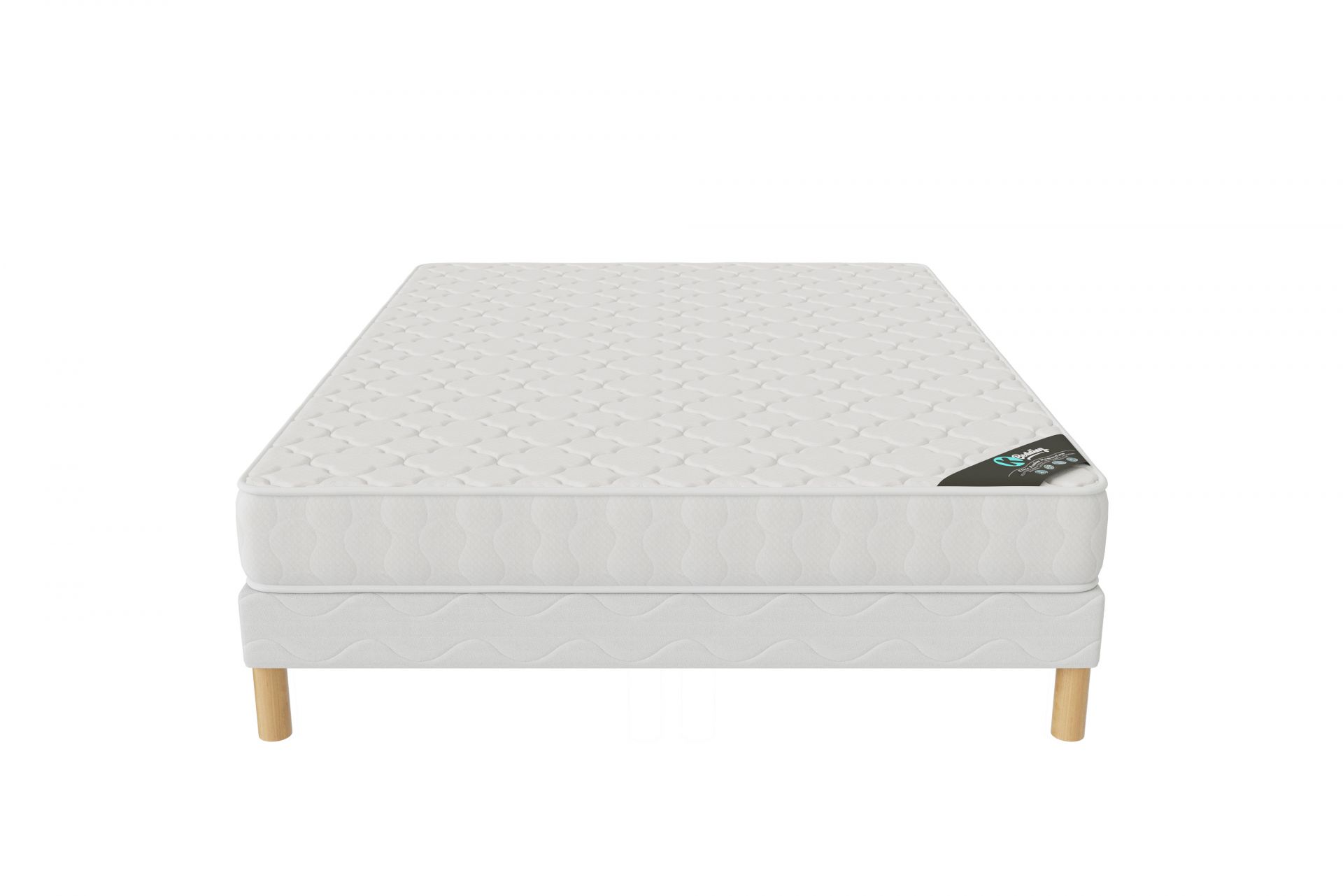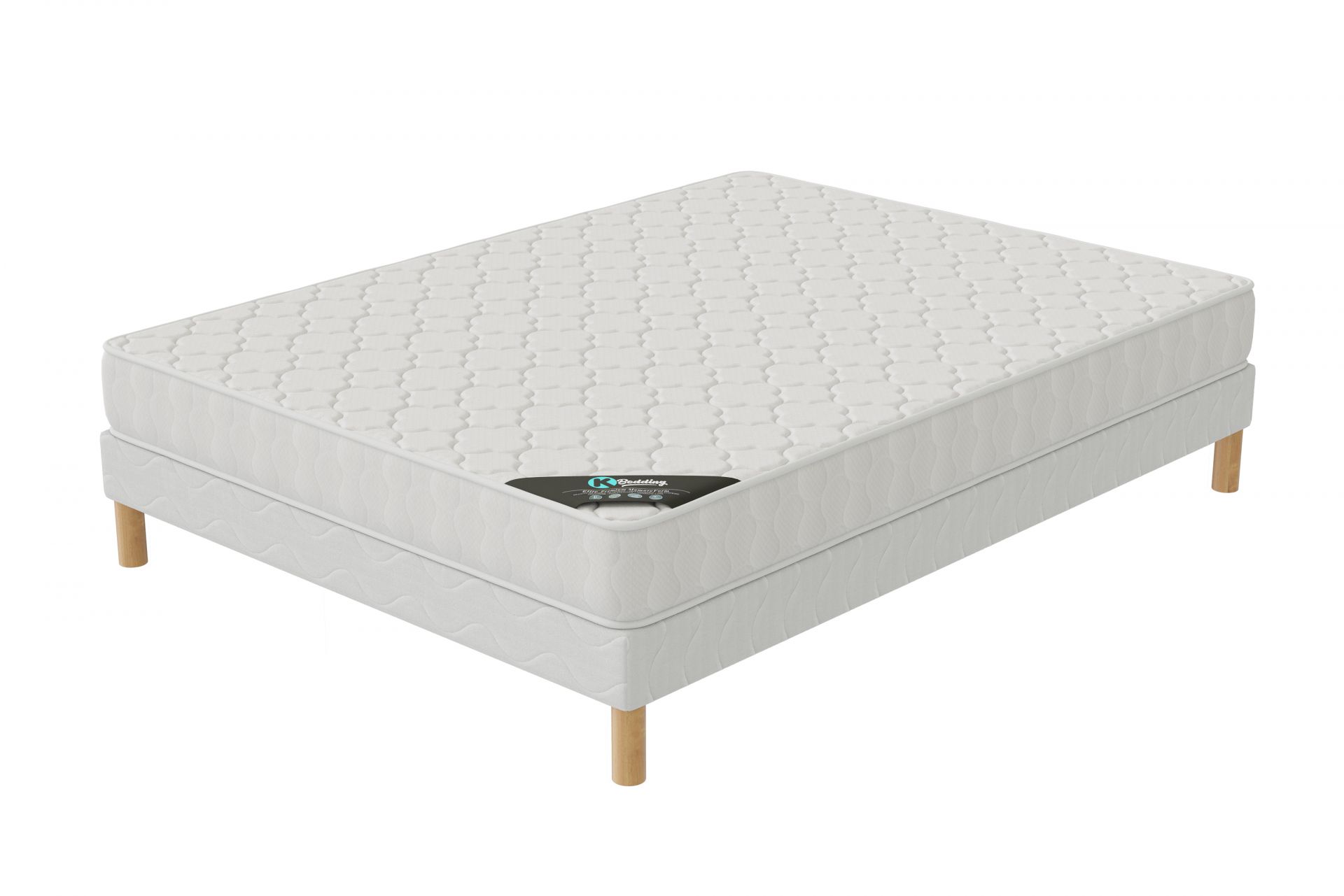 L'ensemble Matelas Confort+ et sommier 140x190 d'une hauteur de 17cm est conçu pour permettre un soutien équilibré en gardant un accueil ferme pour un meilleur confort. Son âme en mousse polyuréthane équilibré d’une densité de 25kg/m3 permet confort optimal. Garni avec une ouate mixte coton 550gr en fibre creuse hypoallergénique et ignifugé 200gr, Il assure un accueil ferme pour un meilleur soutien répondant à toute les normes sécuritaires et hygiéniques. Ce matelas est recouvert d’un tissu 100% polyester stretch blanc.