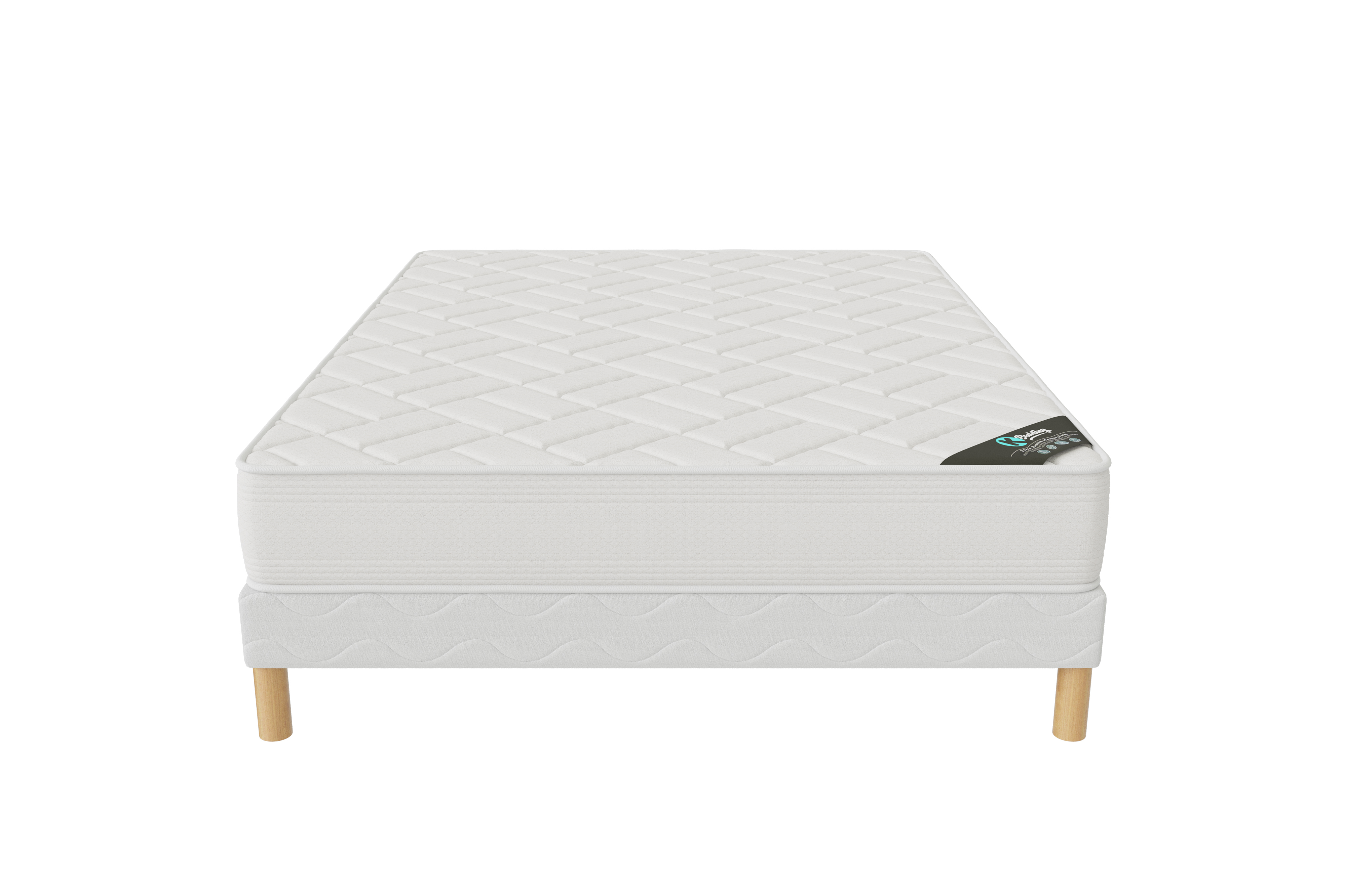 L'ensemble Matelas Zen + sommier 140x200 d'une hauteur de 20cm est conçu pour permettre un soutien équilibré en gardant un accueil ferme pour un meilleur confort. Son âme en mousse polyuréthane équilibré d’une densité de 25kg/m3 permet confort optimal. Garni avec une ouate mixte coton 550gr en fibre creuse hypoallergénique et ignifugé 200gr, Il assure un accueil ferme pour un meilleur soutien répondant à toute les normes sécuritaires et hygiéniques. Ce matelas est recouvert d’un tissu 100% polyester stretch blanc.