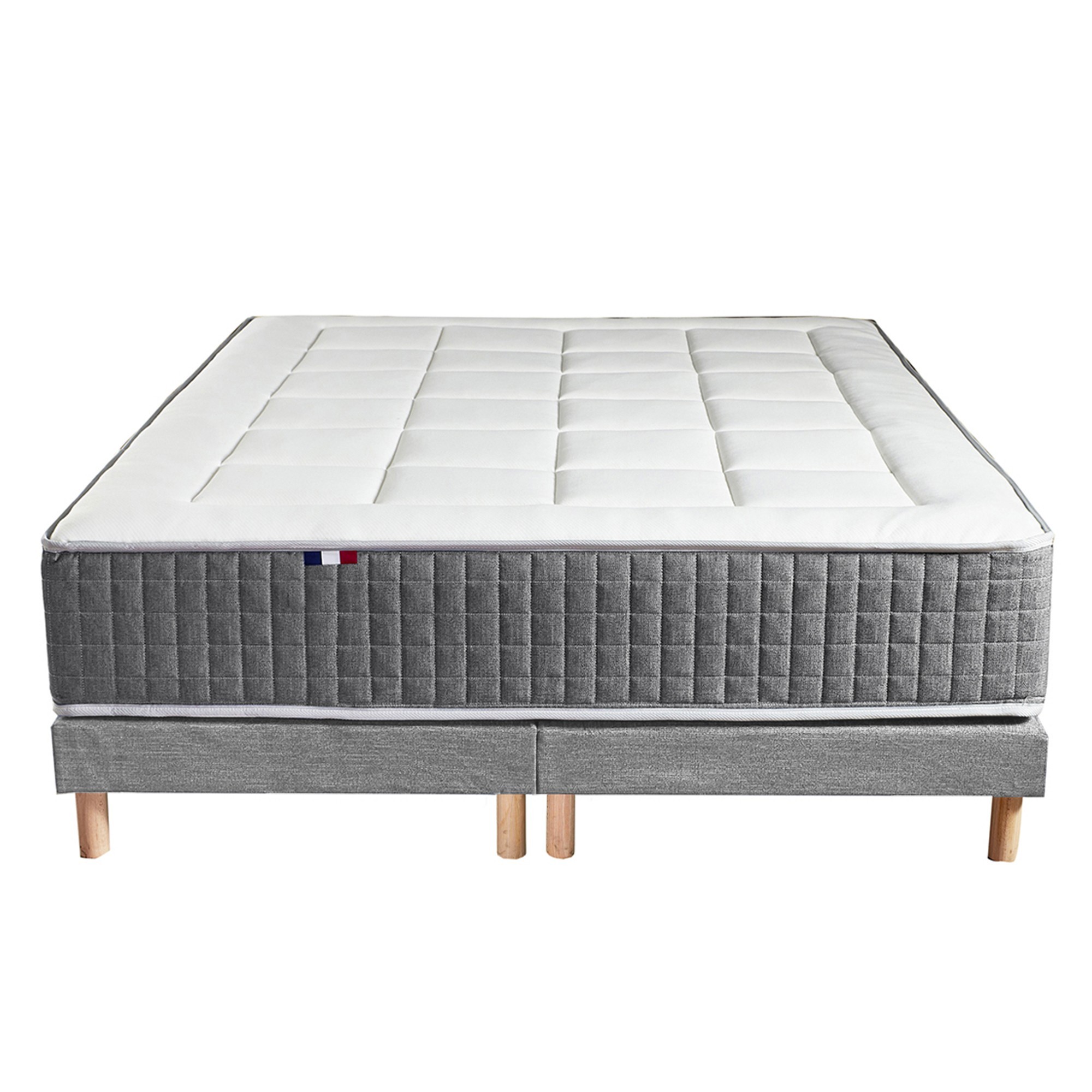 Ensemble Matelas Ressort 7 zones H.28cm + Sommier + couette + oreillers Fabriqué en France MAX - 2x90 x 2