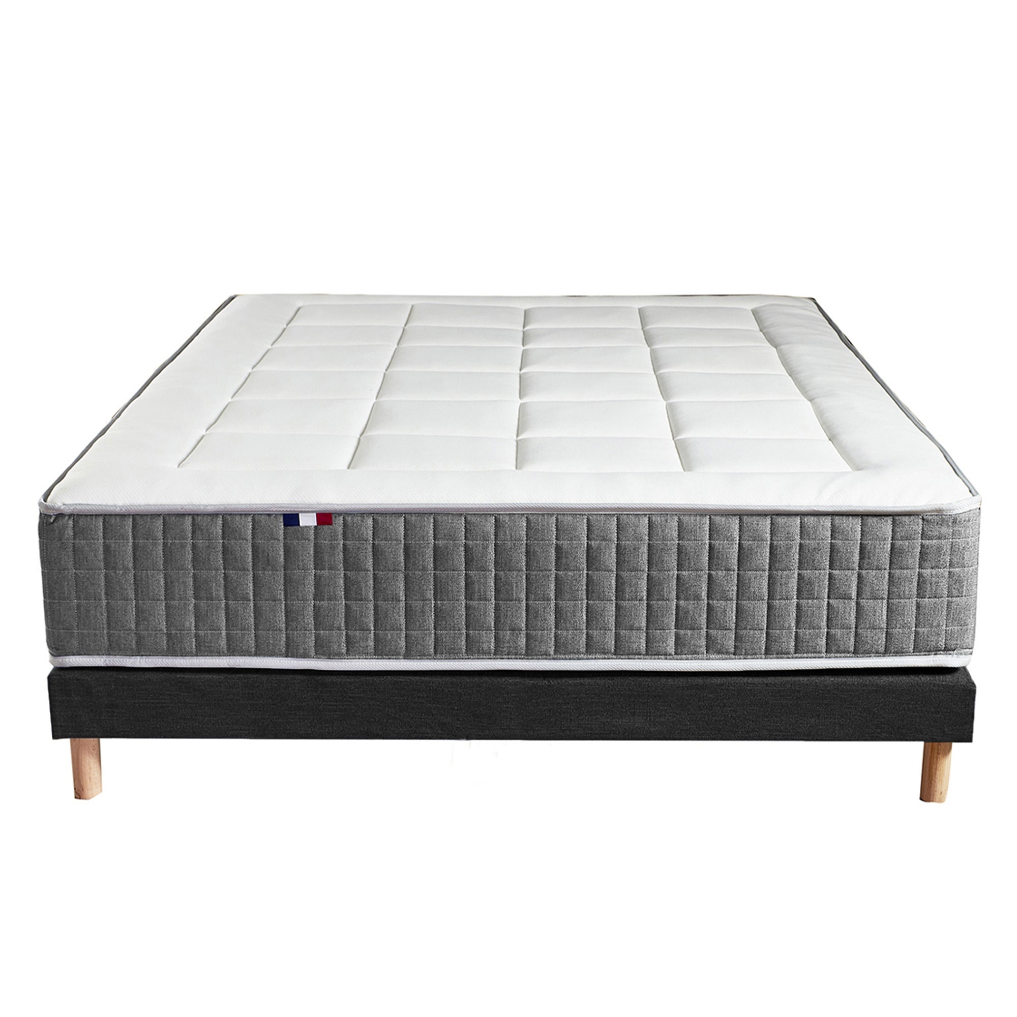 Ensemble Matelas Ressort 7 zones H.28cm + Sommier + couette + oreillers Fabriqué en France MAX Dimensions