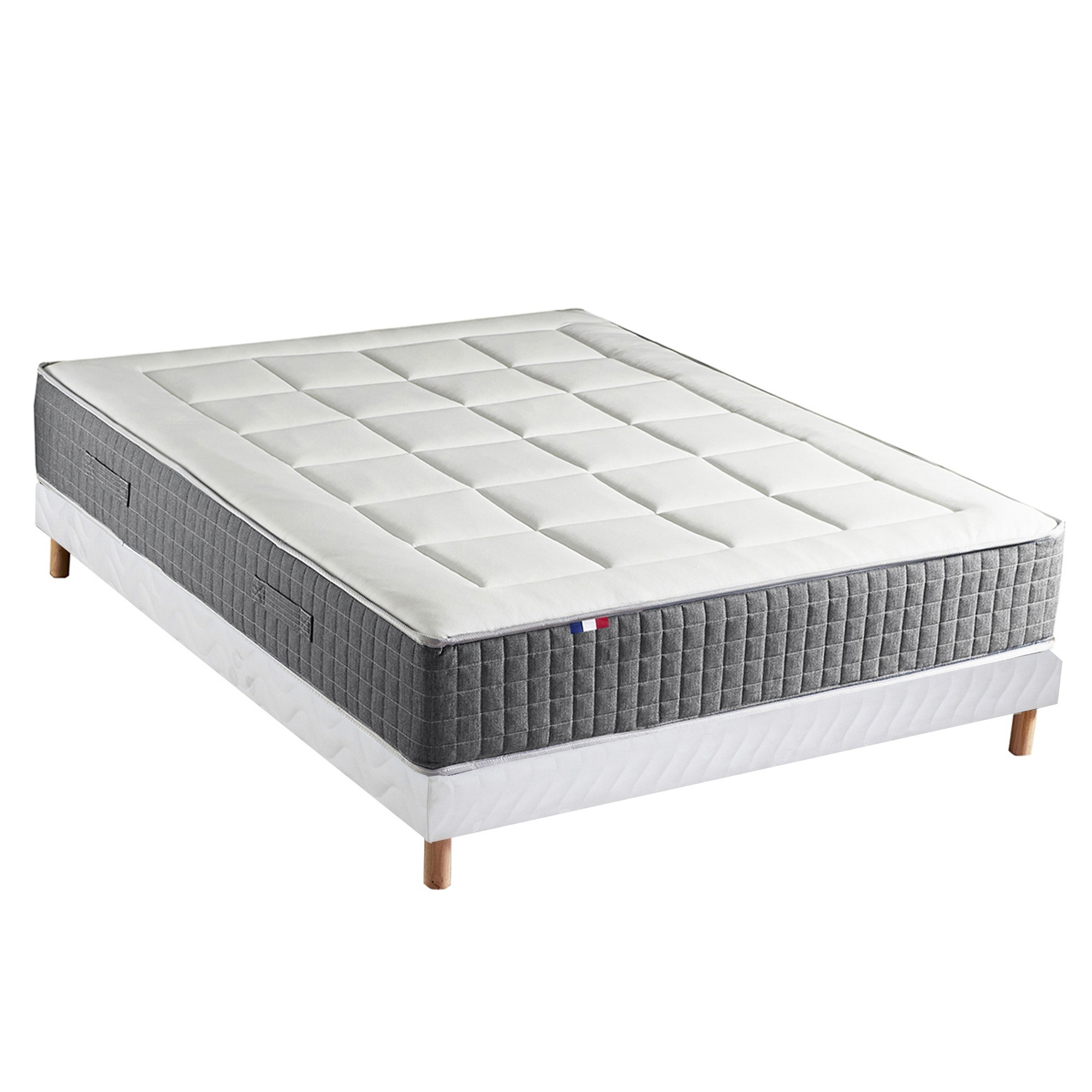 Ensemble Matelas Ressort 7 zones H.28cm + Sommier Fabriqué en France MAX - 140 x 190 cm, Sommier - Blanc